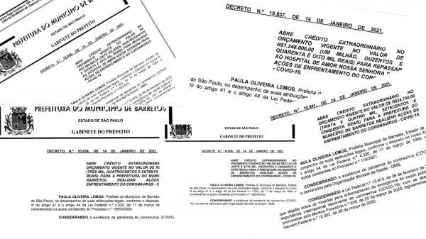 São cinco decretos que foram encaminhados para a Câmara, com objetivo de dar ciência aos vereadores: