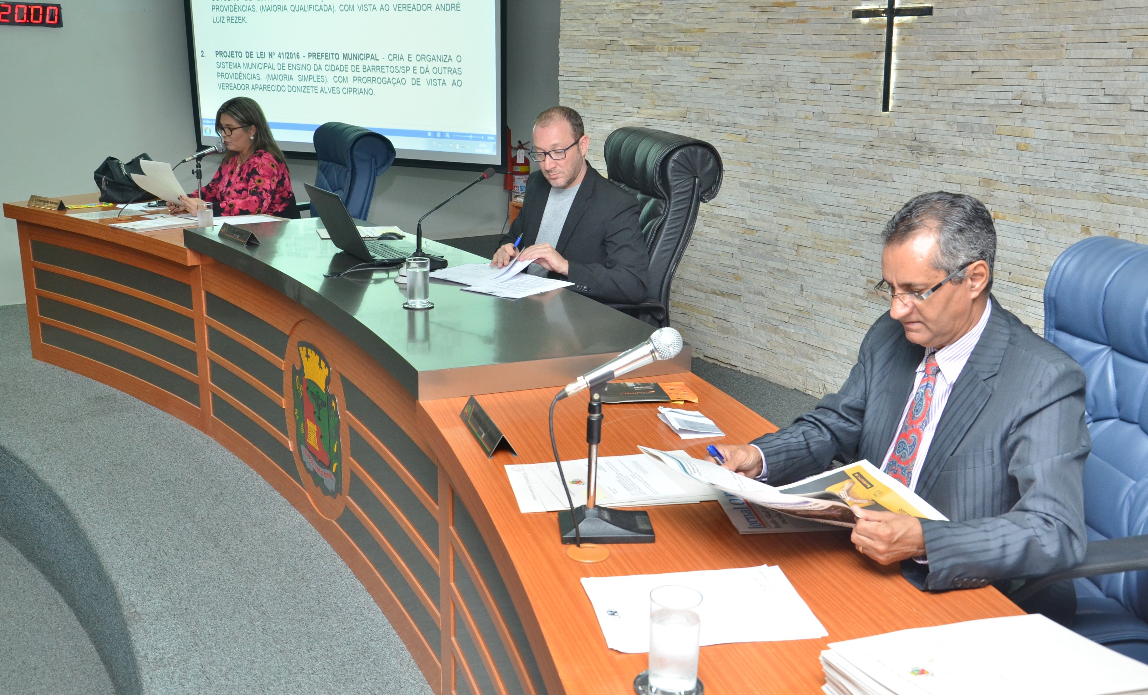 PROJETO DE LEI Nº 41/2016 - de autoria do PREFEITO MUNICIPAL - CRIA E ORGANIZA O SISTEMA MUNICIPAL DE ENSINO DA CIDADE DE BARRETOS/SP E DÁ OUTRAS PROVIDÊNCIAS. COM PRORROGAÇAO DE VISTA AO VEREADOR APARECIDO DONIZETE ALVES CIPRIANO.