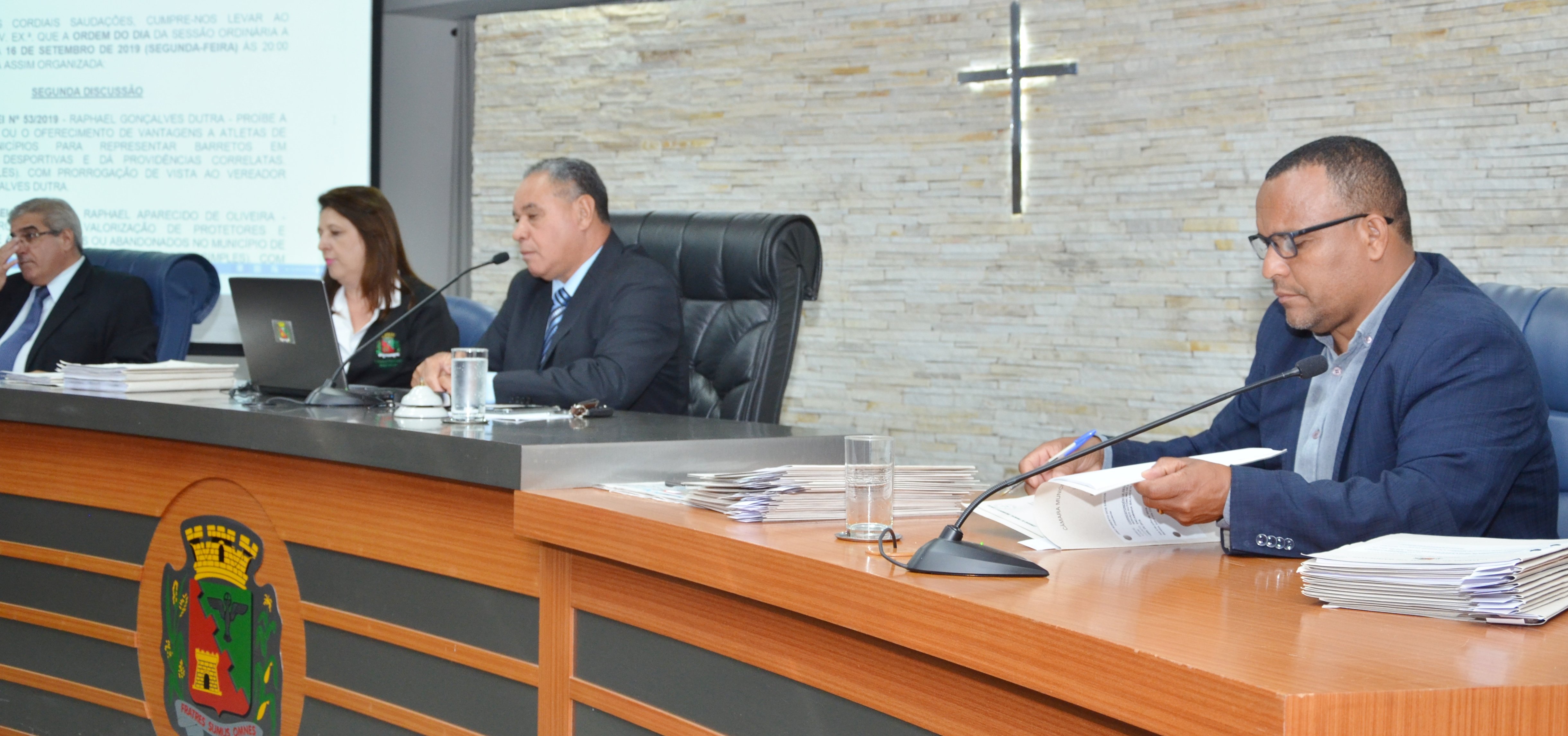 1. PROJETO DE LEI Nº 53/2019 - de autoria do Vereador RAPHAEL GONÇALVES DUTRA - PROÍBE A CONTRATAÇÃO OU O OFERECIMENTO DE VANTAGENS A ATLETAS DE OUTROS MUNICÍPIOS PARA REPRESENTAR BARRETOS EM COMPETIÇÕES DESPORTIVAS E DÁ PROVIDÊNCIAS CORRELATAS. COM PRORROGAÇÃO DE VISTA AO VEREADOR RAPHAEL GONÇALVES DUTRA.