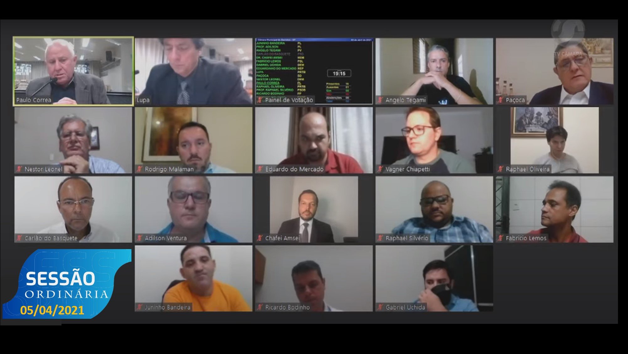 Devido às MEDIDAS DE PREVENÇÃO CONTRA O CORONAVÍRUS, a Sessão foi realizada em sistema de videoconferência, sem a presença de público e vereadores no prédio da Câmara.