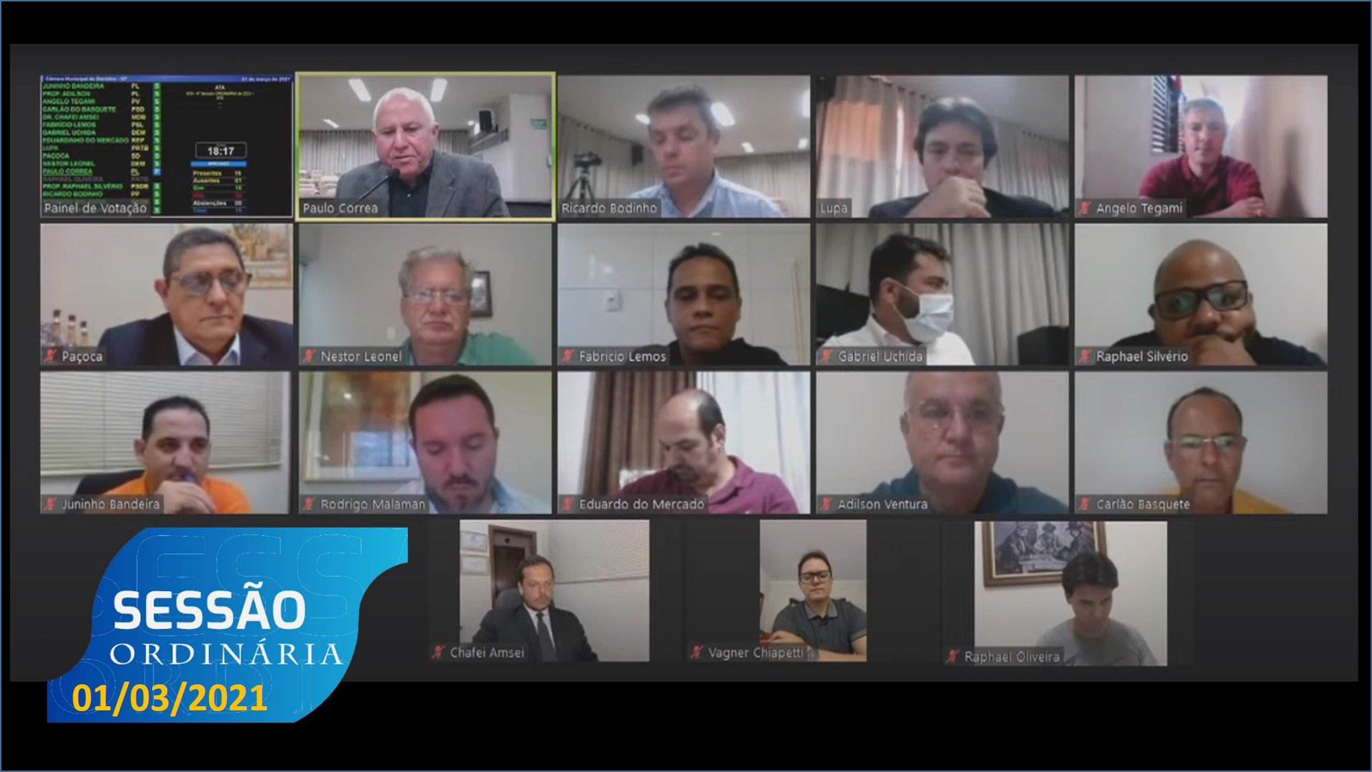 Sessão Ordinária 05/2021, por videoconferência, foi transmitida ao vivo pela TV Câmara canal 31.3, Facebook, Youtube e site