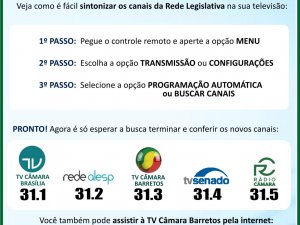A TV Câmara transmite a Sessão Virtual pelo Canal 31.3, Facebook, Youtube e site da Câmara.