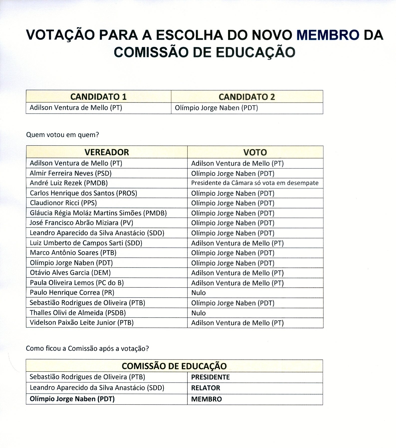 ESCOLHA DO NOVO MEMBRO DA COMISSÃO DE EDUCAÇÃO
