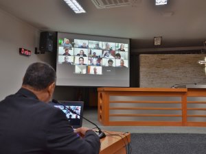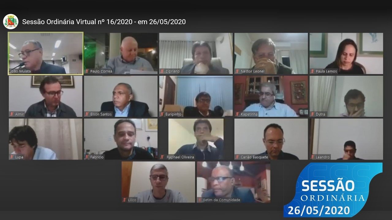 Por medidas de prevenção à Covid-19 (doença causada pelo novo Coronavírus), a Sessão Ordinária desta terça-feira, 26 de maio, foi realizada por videoconferência. Os vereadores discutiram e votaram projetos de lei de forma virtual, direto das próprias casas.