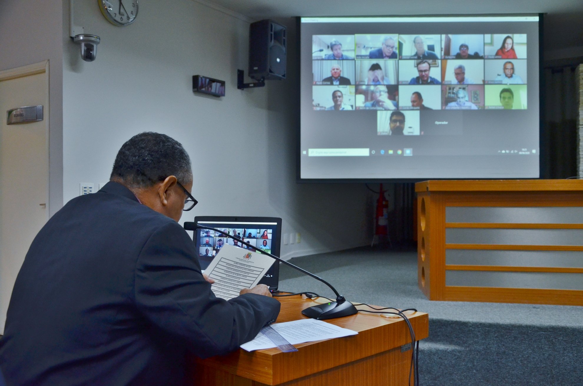 Por medidas de prevenção à Covid-19 (doença causada pelo novo Coronavírus), a Sessão Ordinária desta terça-feira, 26 de maio, foi realizada por videoconferência. Os vereadores discutiram e votaram projetos de lei de forma virtual, direto das próprias casas.