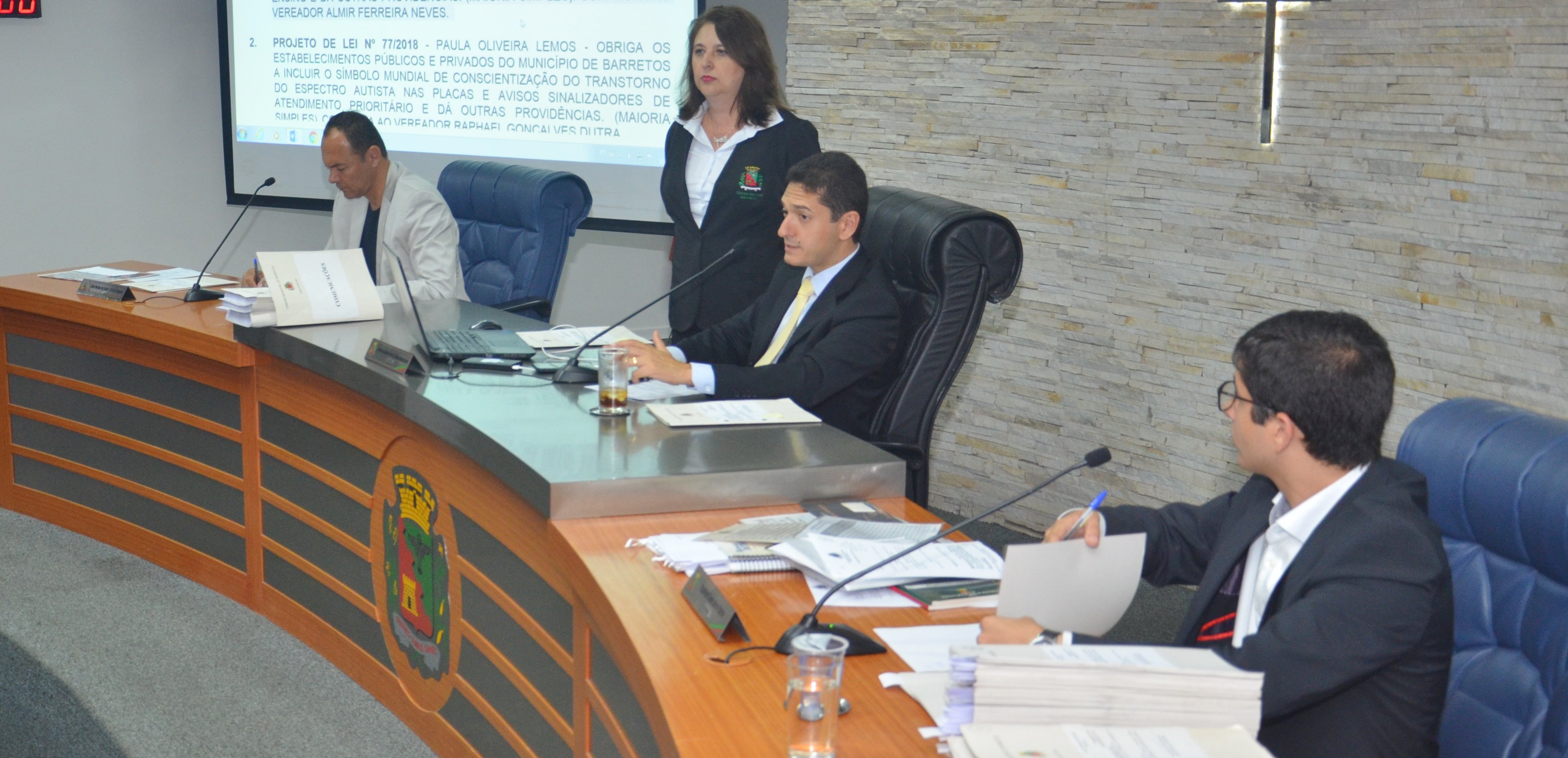 PROJETO DE LEI Nº 77/2018 - de autoria da Vereadora PAULA OLIVEIRA LEMOS - OBRIGA OS ESTABELECIMENTOS PÚBLICOS E PRIVADOS DO MUNICÍPIO DE BARRETOS A INCLUIR O SÍMBOLO MUNDIAL DE CONSCIENTIZAÇÃO DO TRANSTORNO DO ESPECTRO AUTISTA NAS PLACAS E AVISOS SINALIZADORES DE ATENDIMENTO PRIORITÁRIO E DÁ OUTRAS PROVIDÊNCIAS. COM VISTA AO VEREADOR RAPHAEL GONÇALVES DUTRA.