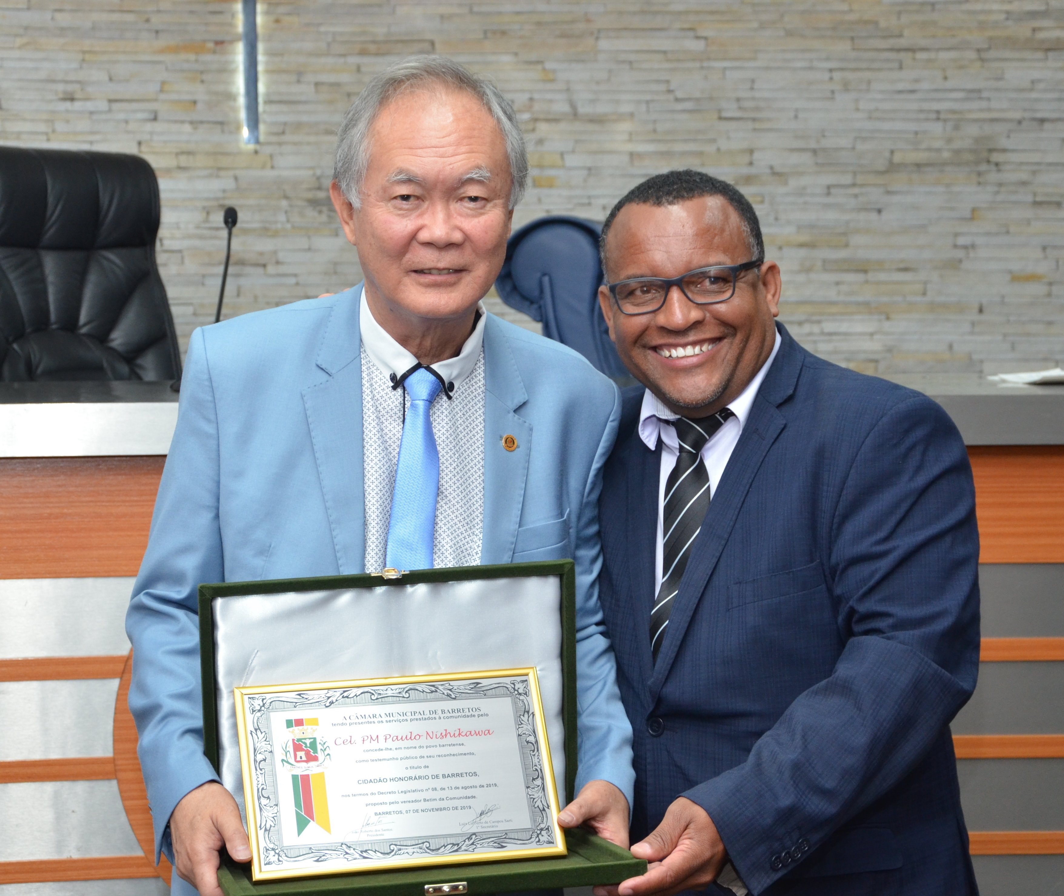 Na noite desta quinta-feira, 07, a Câmara Municipal fez a entrega do Título de Cidadão Honorário de Barretos ao Deputado Estadual Coronel PM Paulo Nishikawa (PSL).