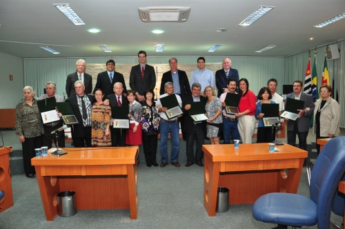 Com a participação do Secretário Municipal de Agricultura e Meio Ambiente, Mauri Trevisan, do Diretor do Sindicato Rural do Vale do Rio Grande, Nestor Leonel, do diretor de agricultura do município, Guilherme Lopes e dos vereadores Olímpio Jorge Nabem, Paulo Correa e Juninho Leite, compondo a mesa, a sessão teve galeria lotada pelos familiares e amigos dos oito homenageados, que receberam o diploma ao lado de suas esposas.