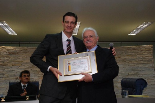O Diretor Regional do Senac São Paulo, Luiz Francisco de Assis Salgado, recebeu na noite da última quinta-feira (27), o Título de Cidadão Honorário de Barretos, proposto pelo vereador Videlson Paixão Leite Júnior, o Juninho Leite. A solenidade foi acompanhada por familiares, amigos e diretores do SENAC, que lotaram a galeria do Legislativo barretense. A solenidade foi aberta, com a apresentação do homenageado, pelo vereador Juninho Leite. “O objetivo do diretor sempre foi entregar ao mercado de trabalho profissionais especializados e alinhados com os mais modernos conceitos de educação. A atuação em Barretos é prova de que as soluções educacionais propostas contribuíram na renovação do potencial mercadológico local”. Juninho Leite reitera o esforço e a participação do diretor regional do Senac São Paulo para que a instituição tenha se tornado uma referência educacional. “A influência e a perseverança do Sr. Salgado se refletem nas conquistas que o Senac tem alcançado nos últimos anos, expandindo suas atividades e instalações. Todo esse esforço se traduz numa instituição democrática e formadora de opinião”, disse. Sr. Salgado ocupou a Tribuna e fez um agradecimento pela homenagem prestada pela Câmara Municipal de Barretos, além de destacar a trajetória da instituição no município. “Hoje é um dia muito especial e eu só tenho a agradecer por essa honraria. Além do mais, o Senac Barretos apresenta suas novas instalações, com investimento de R$ 4,5 milhões na ampliação da escola para receber até 6,6 mil pessoas por ano, o que representa aumento de mais de 50% na capacidade de atendimento. Por isso, em nome de toda diretoria, agradeço a recepção do povo barretense”, finalizou.