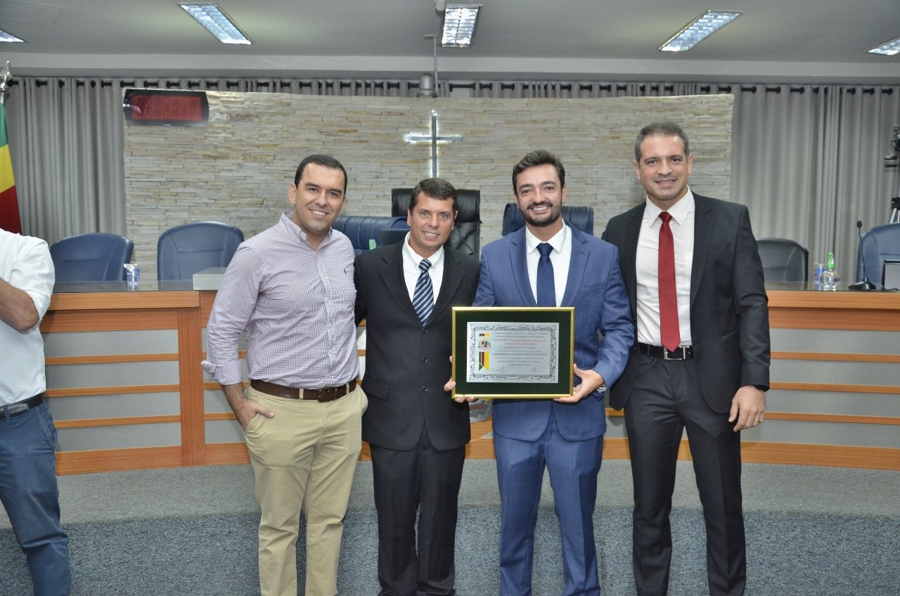 A solenidade foi conduzida pelo vereador Ricardo Bodinho (PP) e contou com a presença dos vereadores Dr. Rodrigo Malaman (PSDB) e Dr. Chafei (MDB);