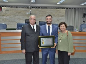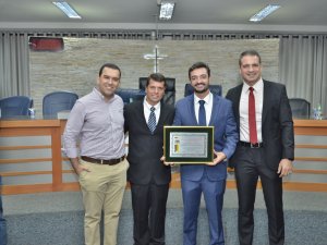 O Empresário e Cirurgião Dentista, Dr. Raphael Augusto Novaes Brigagão Pinheiro de Alcântara, recebeu o Título de Cidadão Honorário da Estância Turística de Barretos em Sessão Solene realizada na noite de sexta-feira (24/março), na Câmara.