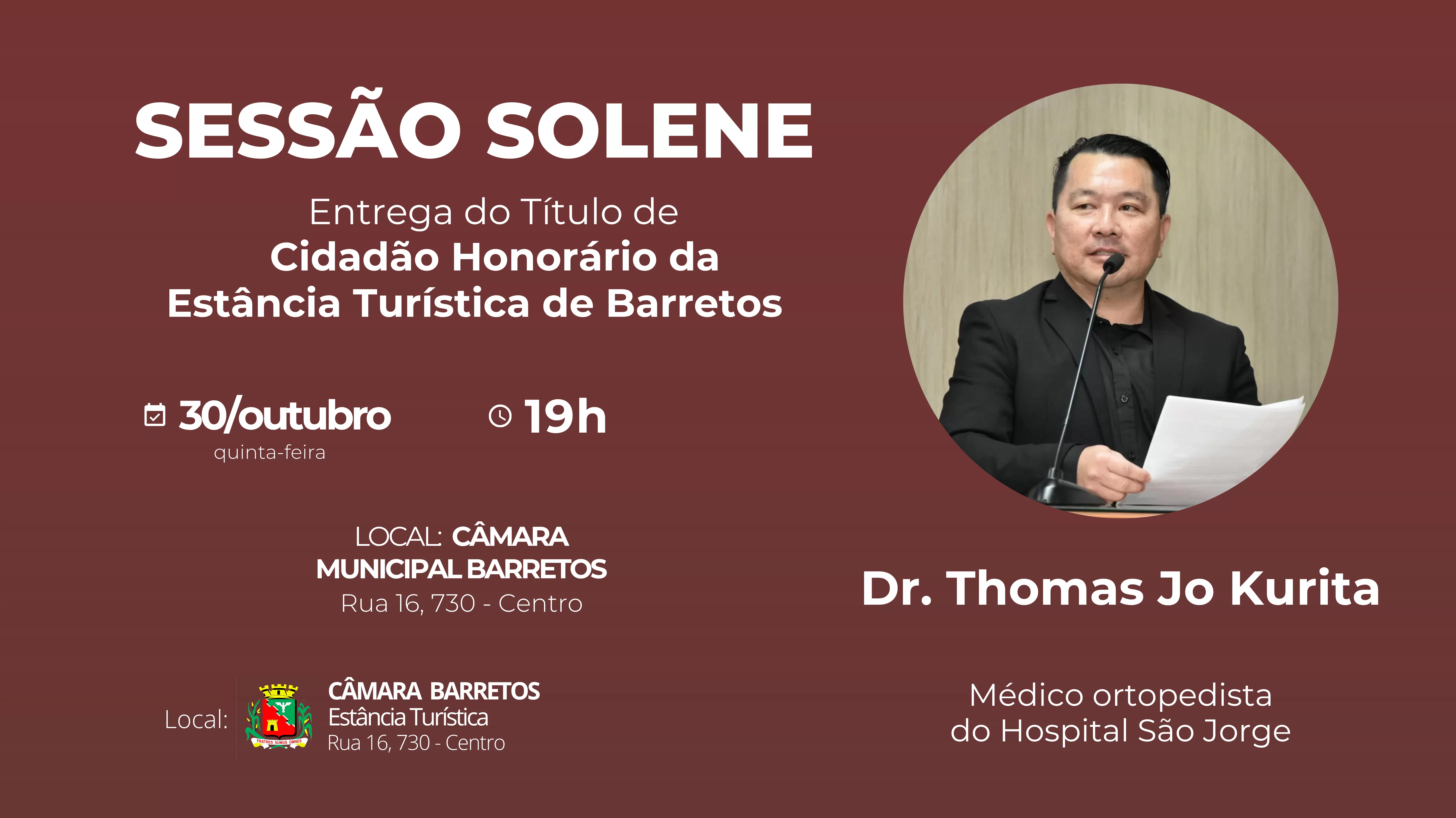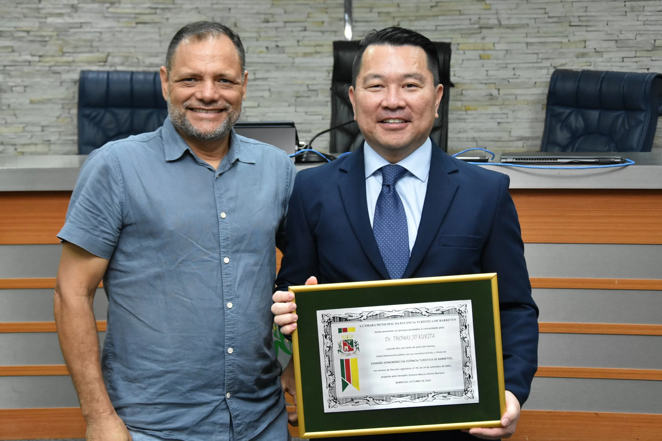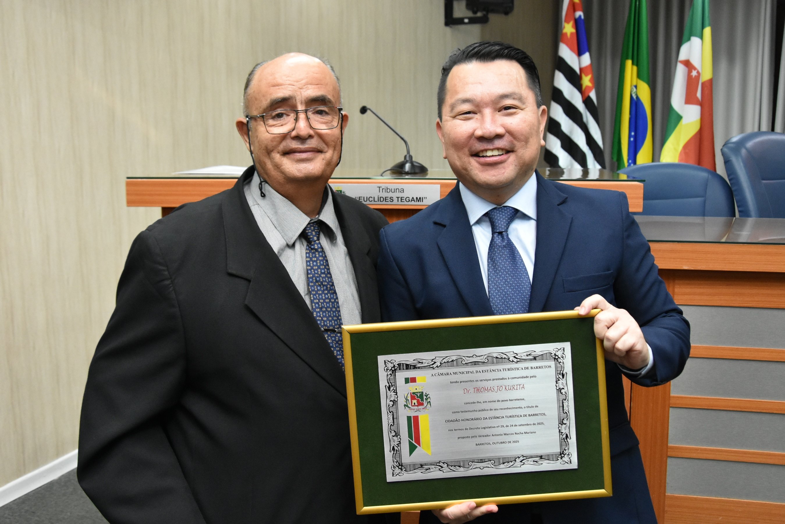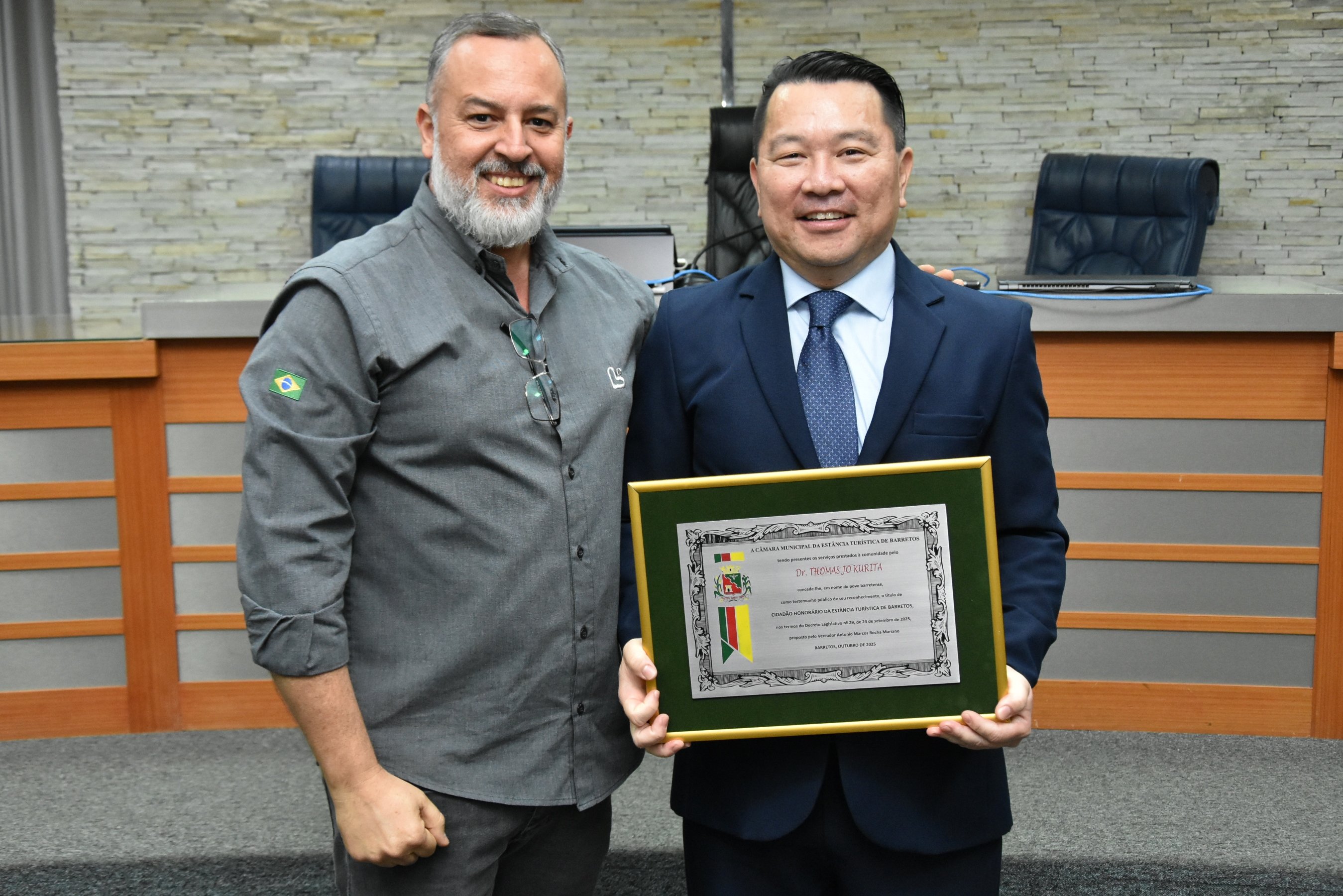 A Câmara Municipal de Barretos realizou no dia 30 de outubro (quinta-feira), às 19h, Sessão Solene para entrega do Título de Cidadão Honorário da Estância Turística de Barretos ao Dr. Thomas Jo Kurita.