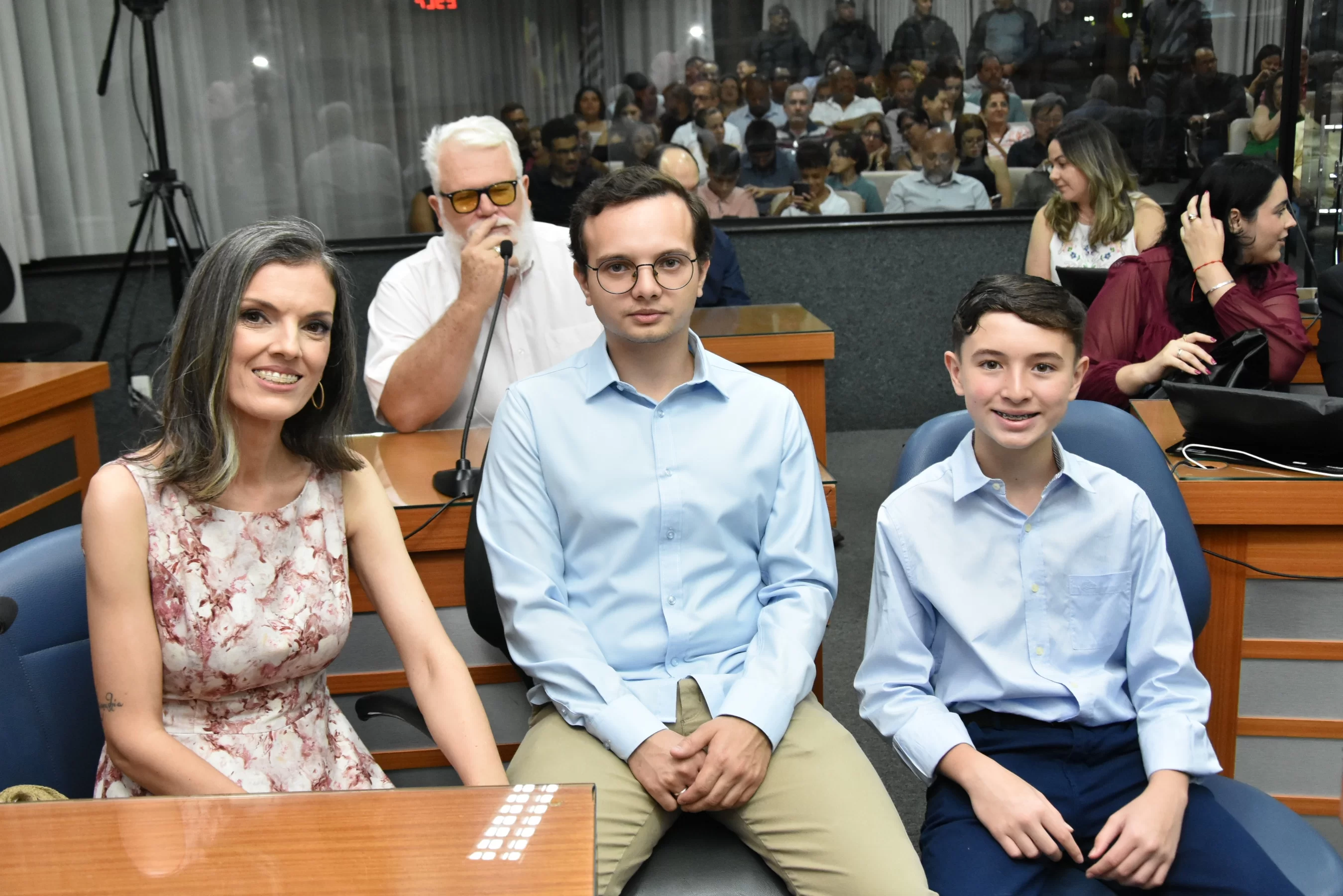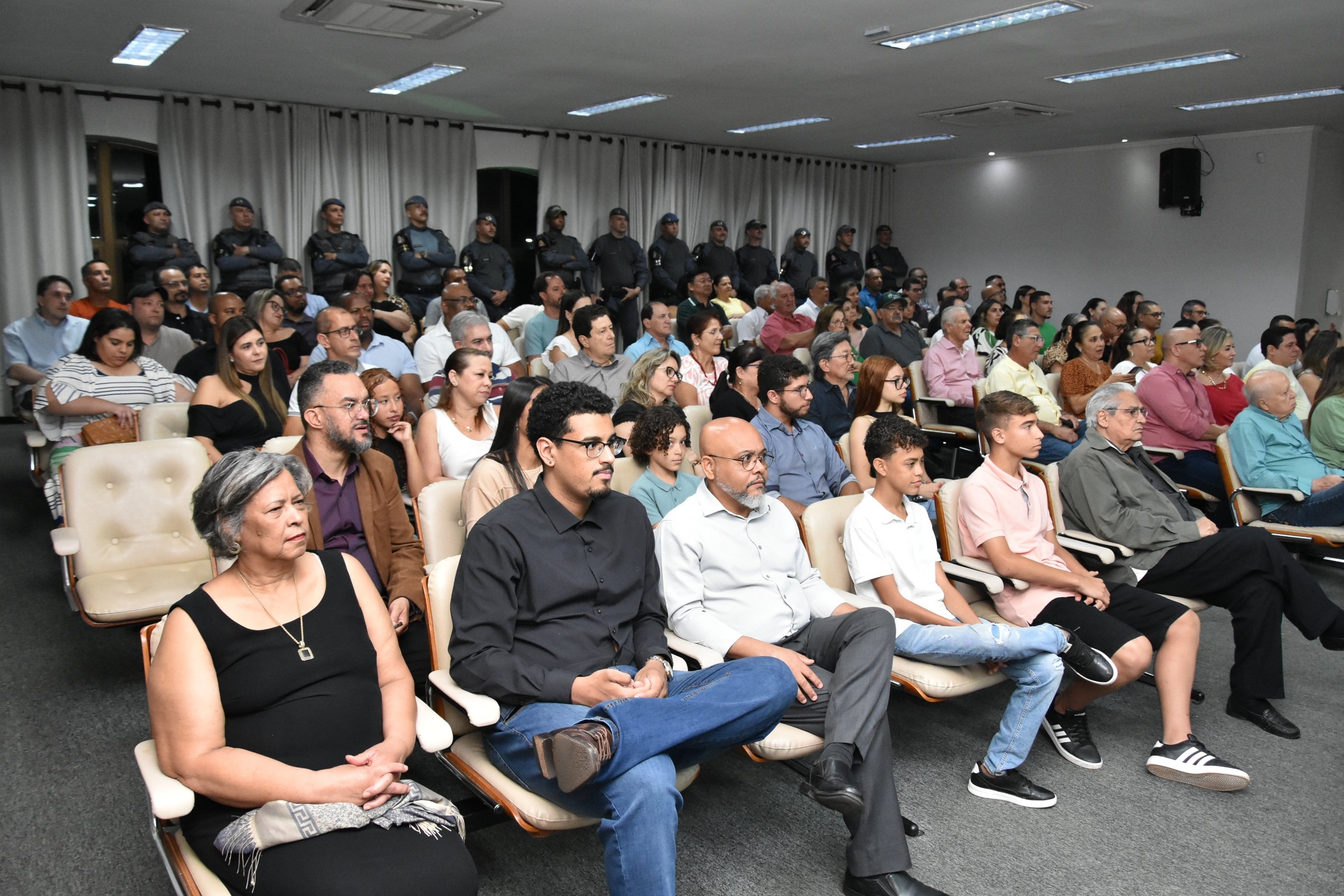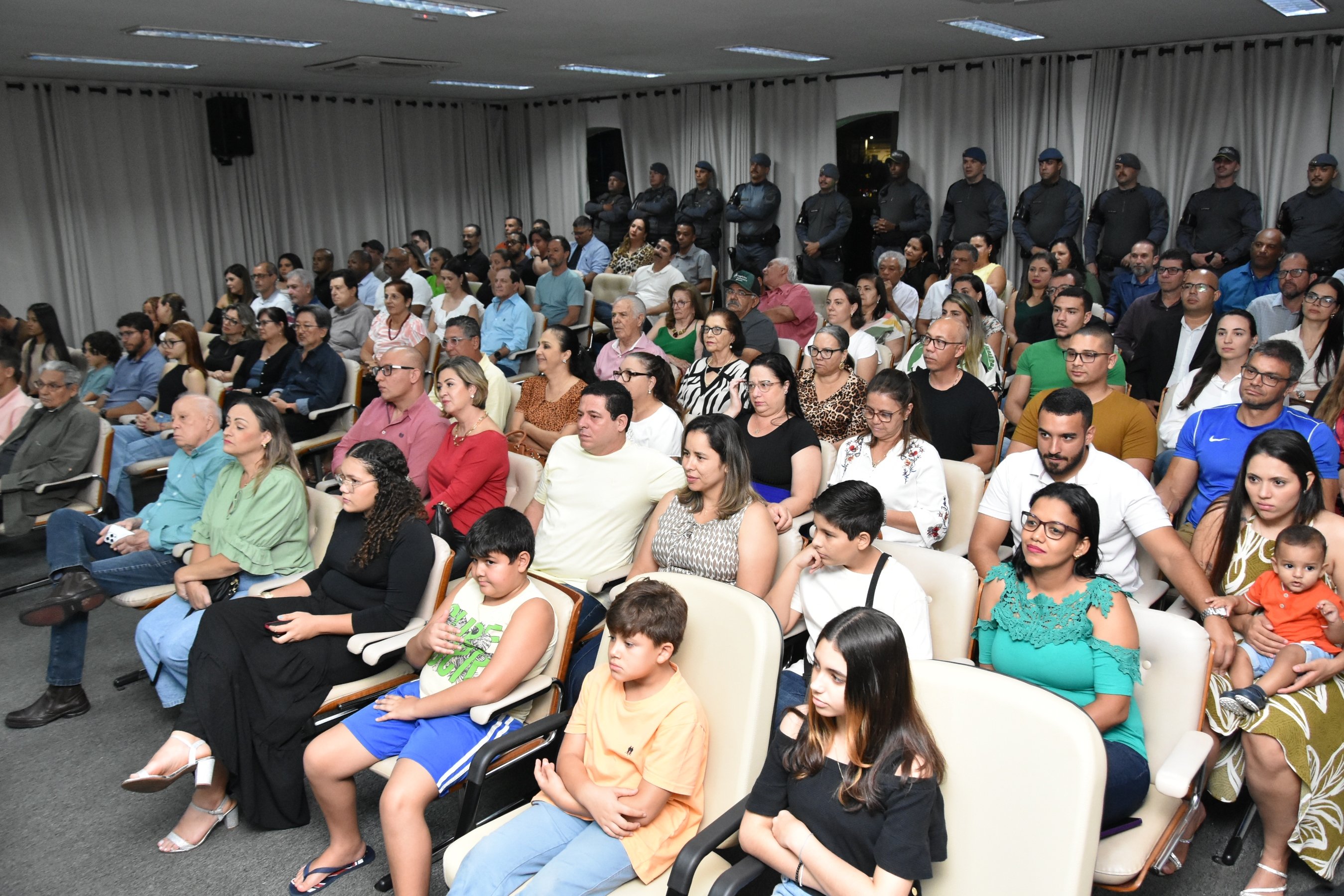 Várias autoridades, familiares e amigos do homenageado estiveram presentes e lotaram o Plenário da Câmara Municipal para prestigiarem a solenidade.