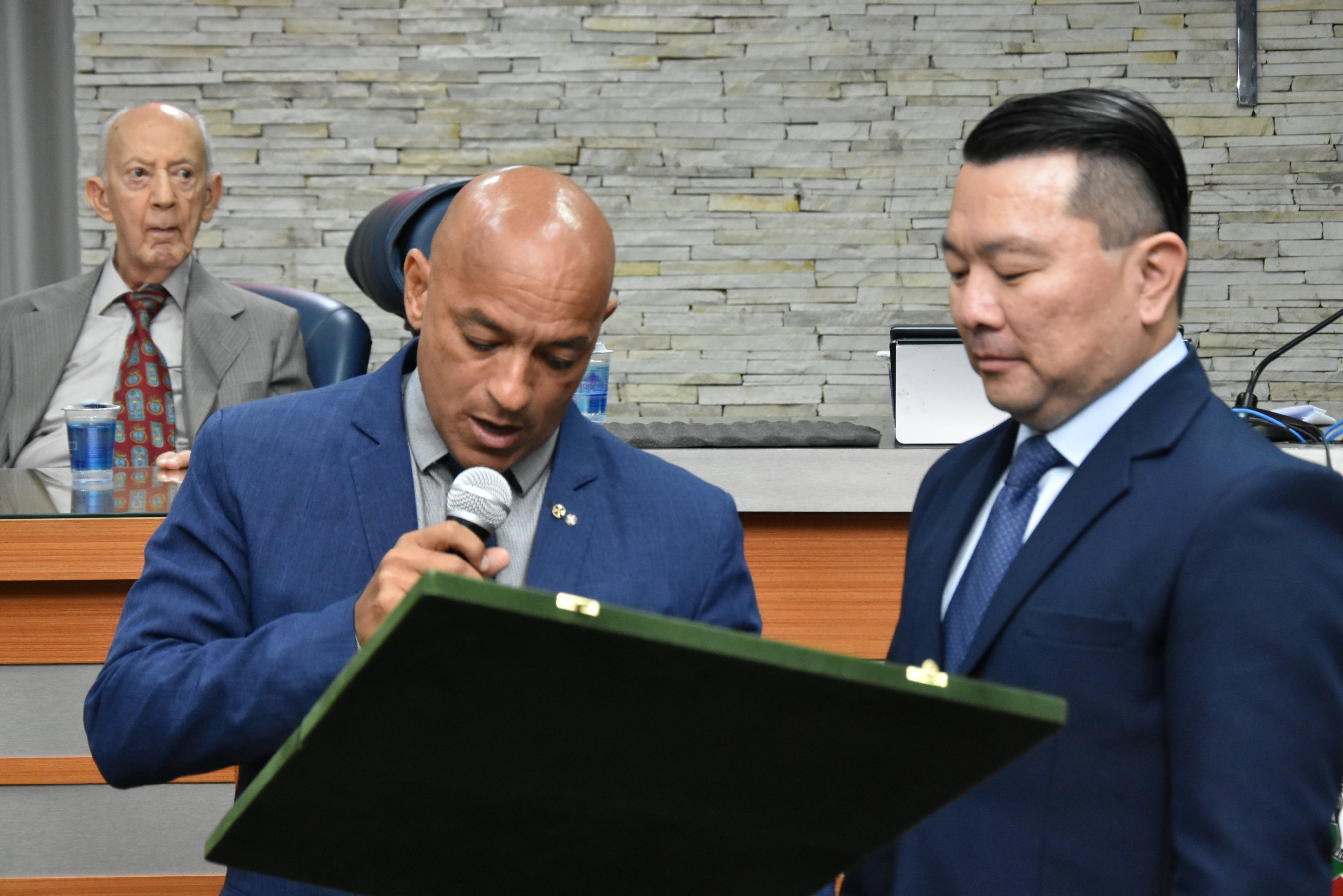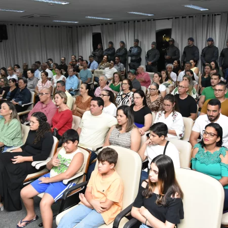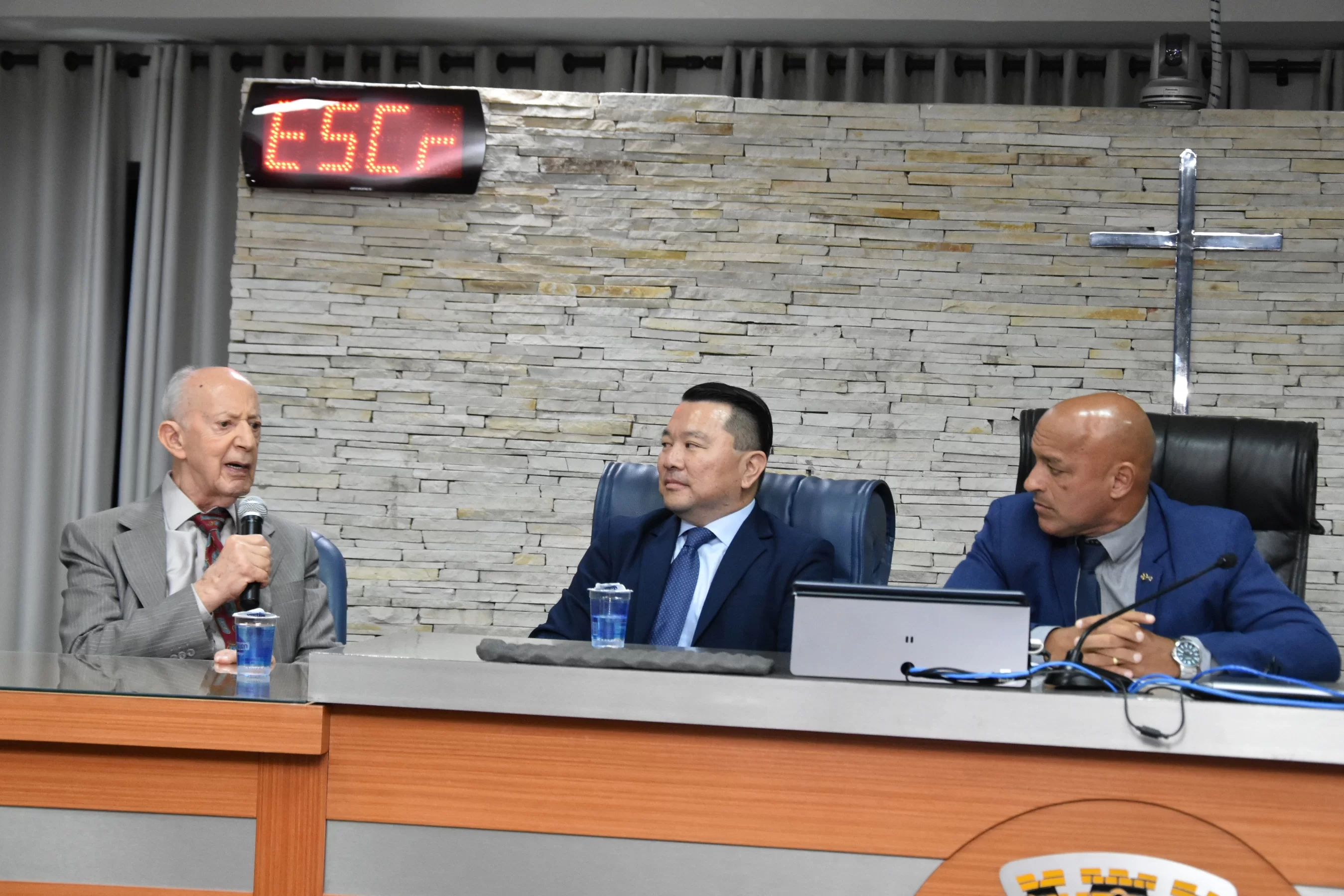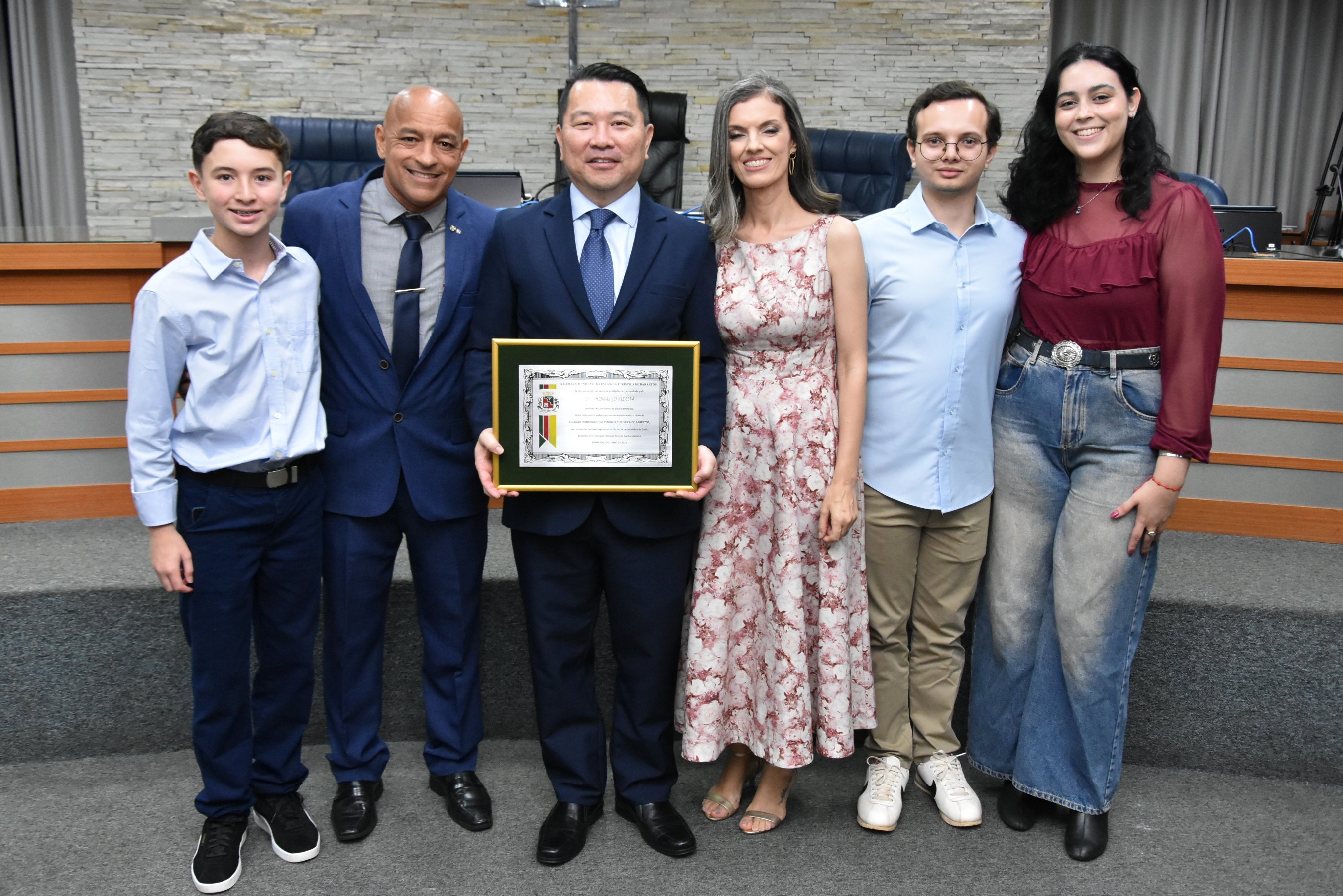 Várias autoridades, familiares e amigos do homenageado estiveram presentes e lotaram o Plenário da Câmara Municipal para prestigiarem a solenidade.