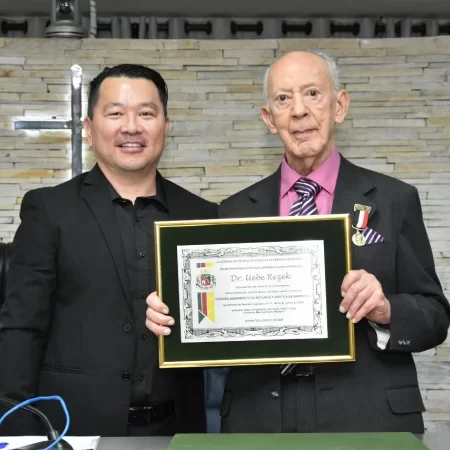 A homenagem foi proposta pelo vereador Antonio Marcos Rocha Mariano (UNIÃO), por meio do Projeto de Decreto Legislativo nº 27/2025, aprovado pelos vereadores.