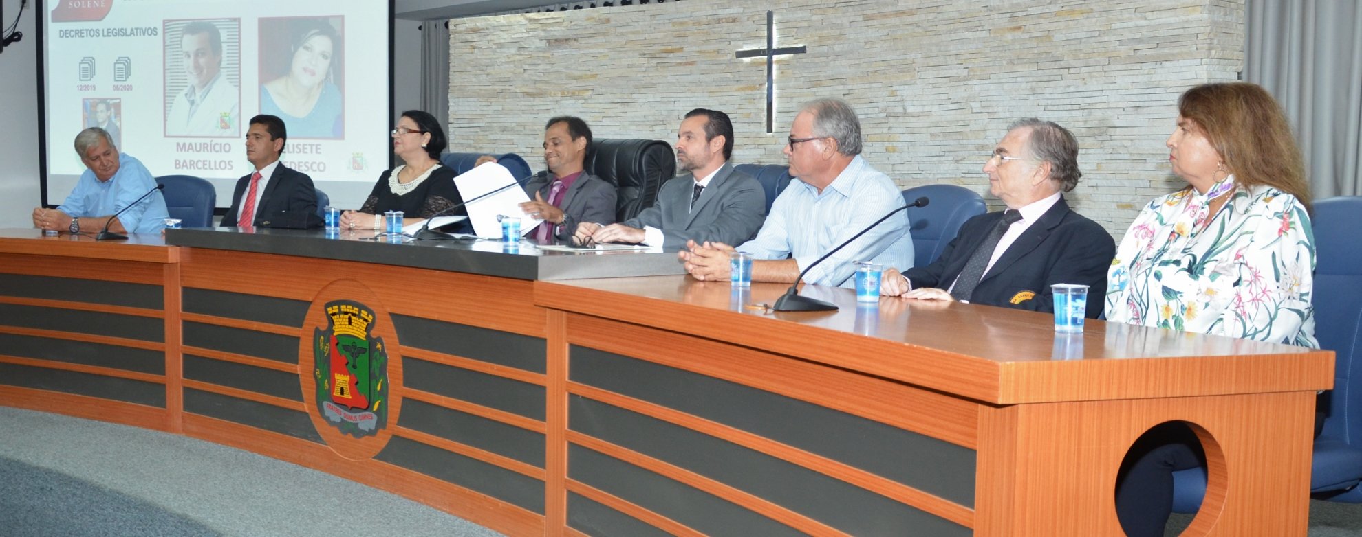 Na noite desta quinta-feira, 12, dois munícipes foram homenageados, durante Sessão Solene na Câmara de Barretos, Elisete Greve Tedesco recebeu o Título de Cidadã Honorária e Maurício Barcellos de Oliveira o de Cidadão Benemérito. As homenagens são de inciativa do Vereador Fabrício Lemos, feitas por meio do Decreto Legislativo 06/2020 e do Decreto Legislativo 12/2019.