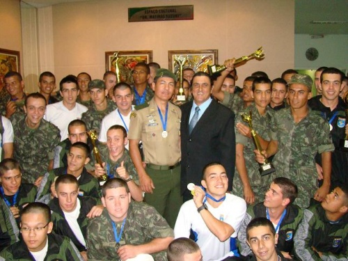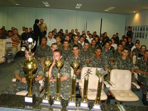 A Câmara Municipal de Barretos recebeu na noite desta segunda-feira, dia 3, o chefe da instrução do Tiro de Guerra 02-005, subtenente Vanderlei Ribeiro dos Santos e os atiradores da turma 2011, que vieram acompanhar a votação do requerimento 1266/2011 de autoria do vereador Olimpio Jorge Naben, “Euripinho”, que concede Votos de Louvor e Congratulações aos atiradores, pela conquista da Competição Regional entre os Tiros de Guerra. A competição que reuniu 450 atiradores das cidades de Barretos, Olímpia, Bebedouro, Franca, Jaboticabal, Rio Preto e Mirassol aconteceu no dia 25 de setembro e teve o apoio do Departamento de Esportes, que auxiliou na organização e estrutura para a disputa das modalidades tiro de fuzil “standard”, corrida revezamento, natação, biathlon, xadrez, cabo de guerra, futebol, voleibol, tiro ao alvo e corrida de 5 km.