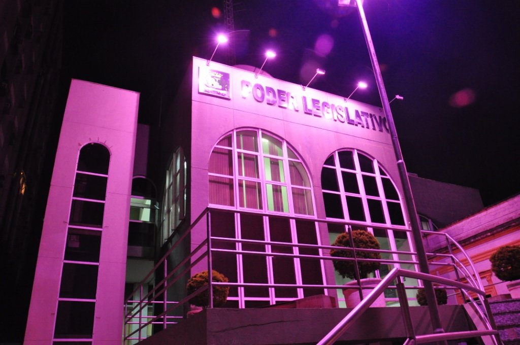 Fachada da Câmara de Barretos recebe iluminação especial para destacar Outubro Rosa