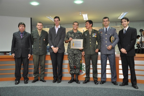 Na última sexta, dia 18, aconteceu na Câmara Municipal de Barretos a entrega do diploma “Atirador Destaque do Ano”, ao jovem Felipe Alberto de Oliveira, conforme o Decreto Legislativo nº 14/2011. A sessão solene contou com a presença da turma 2011 de atiradores do Tiro de Guerra de Barretos, além de familiares e amigos. O vereador Guilherme Ávila presidiu a solenidade que teve discurso do 2º tenente instrutor do TG, Vanderlei Ribeiro dos Santos, e do vereador Aparecido Cipriano, que mostrou fotos da vida do homenageado, Felipe Alberto. O diploma foi entregue pelo presidente da Câmara, vereador Juninho Leite. Após a cerimônia os atiradores partiram para o acampamento anual de três dias de duração.