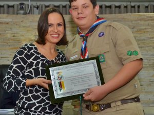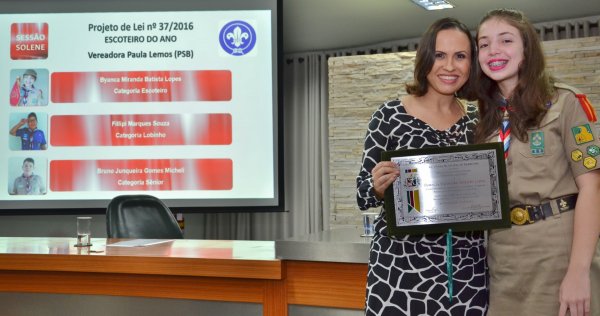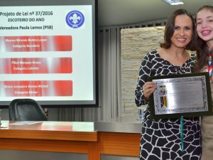 O Diploma de Escoteiro do Ano, que foi concedido aos jovens, é resultado do Projeto de Lei nº 37/2016, de autoria da Vereadora Paula Lemos (PSB).