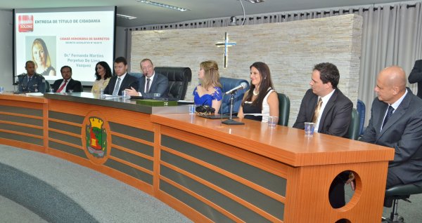 Na noite desta sexta-feira, 23 de outubro, a Câmara Municipal realizou Sessão Solene para entrega do Título de Cidadã Honorária de Barretos à Diretora do Fórum, Juíza Fernanda Martins Perpétuo de Lima Vazquez.