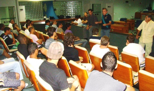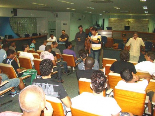 O vereador Juninho Leite, presidente da Câmara Municipal de Barretos, abriu as portas do Legislativo barretense, para uma importante reunião entre a diretoria do Barretos Esporte Clube, Comissão Técnica e todos os jogadores do elenco, na noite desta terça-feira, dia 16, no plenário da Câmara Municipal de Barretos. Na oportunidade, o presidente Milton Aparecido da Silva, juntamente com os diretores vereador Juninho Leite, Thiago Lopes e José Reinaldo Borges, conversaram com os atletas e destacaram todo o potencial da equipe e da comissão técnica, que só depende do grupo para garantir a classificação a próxima fase da Segunda Divisão.