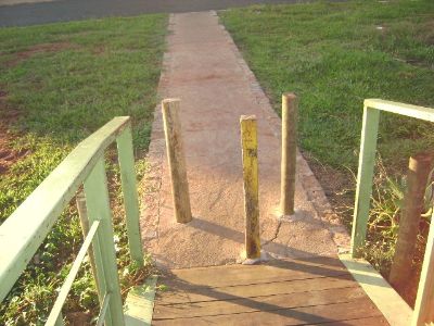 Segundo Kapetinha foram implantados esses obstáculos de madeira nas entradas/saídas da passarela, inviabilizando sua transposição por portadores de necessidades especiais. “De nada vale a passarela do modo em que está, pois os cadeirantes são obrigados a longos e morosos contornos pela via pública correndo vários riscos”, comentou.