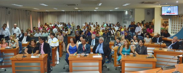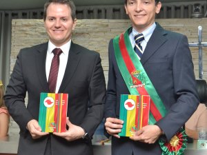 Durante Sessão Solene, prefeito e vice-prefeito tomaram posse, além dos 17 vereadores que também elegeram a nova Mesa Diretora do Legislativo