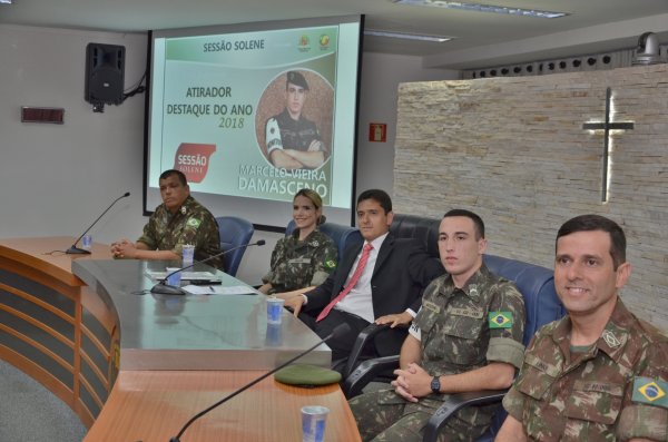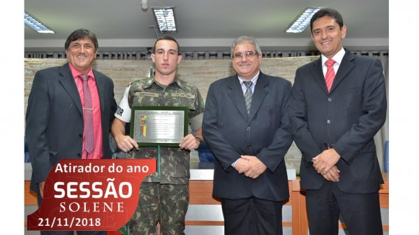 Aconteceu na noite desta quarta-feira, 21 de novembro, no Plenário “Ruy Menezes”, a Sessão Solene para entrega do Diploma de “Atirador Destaque do Ano” ao jovem Marcelo Vieira Damasceno.