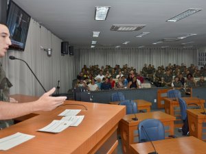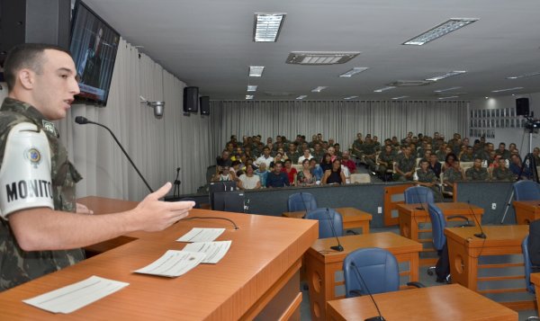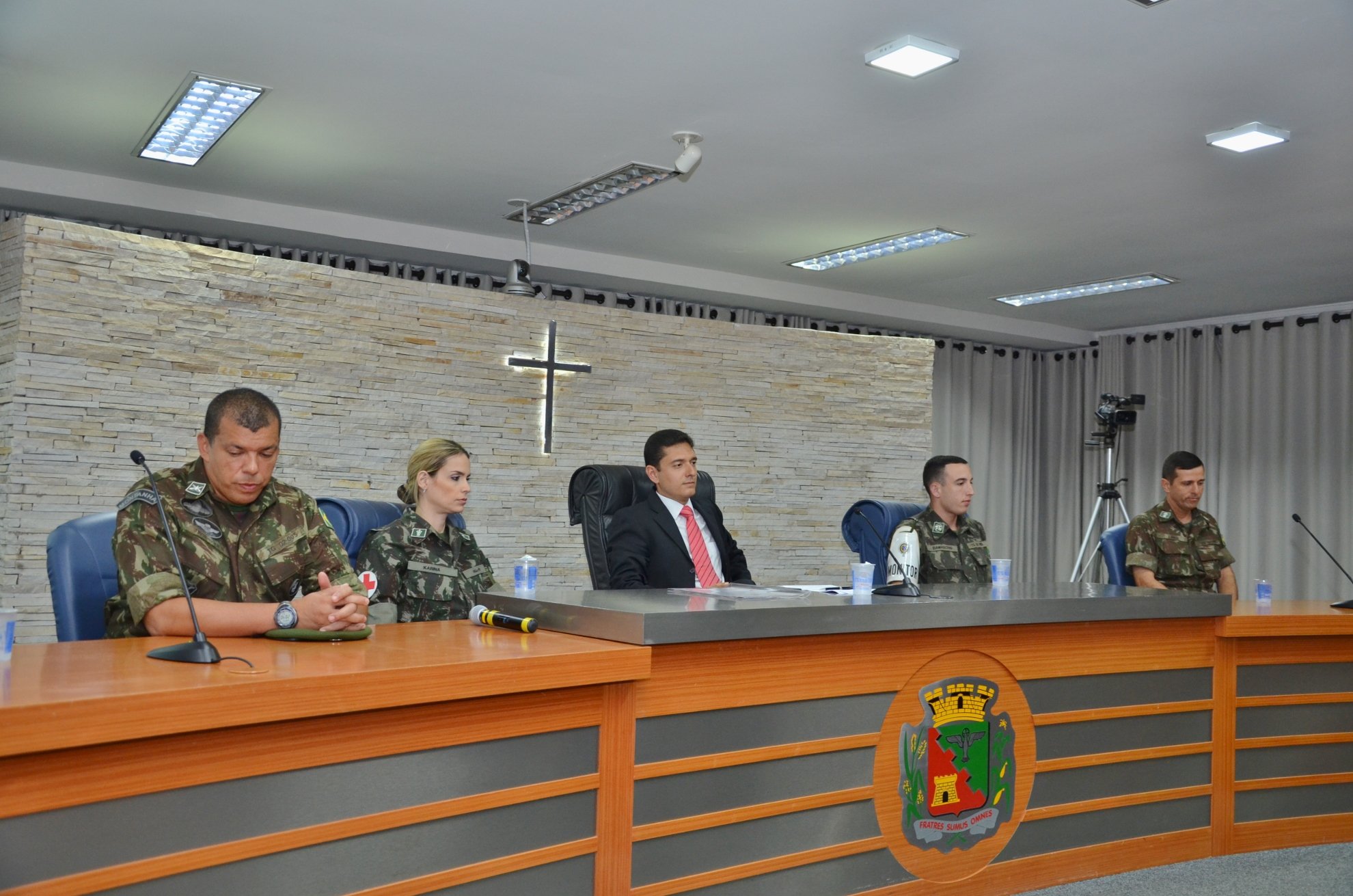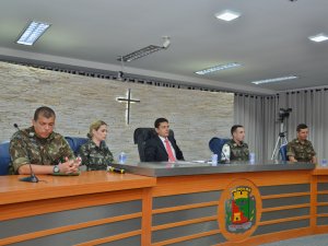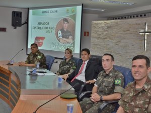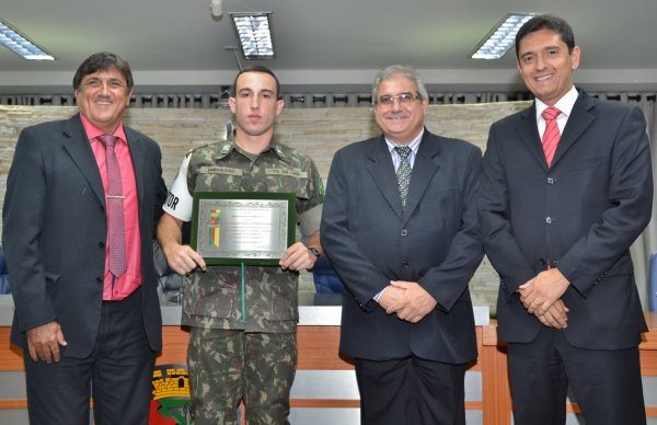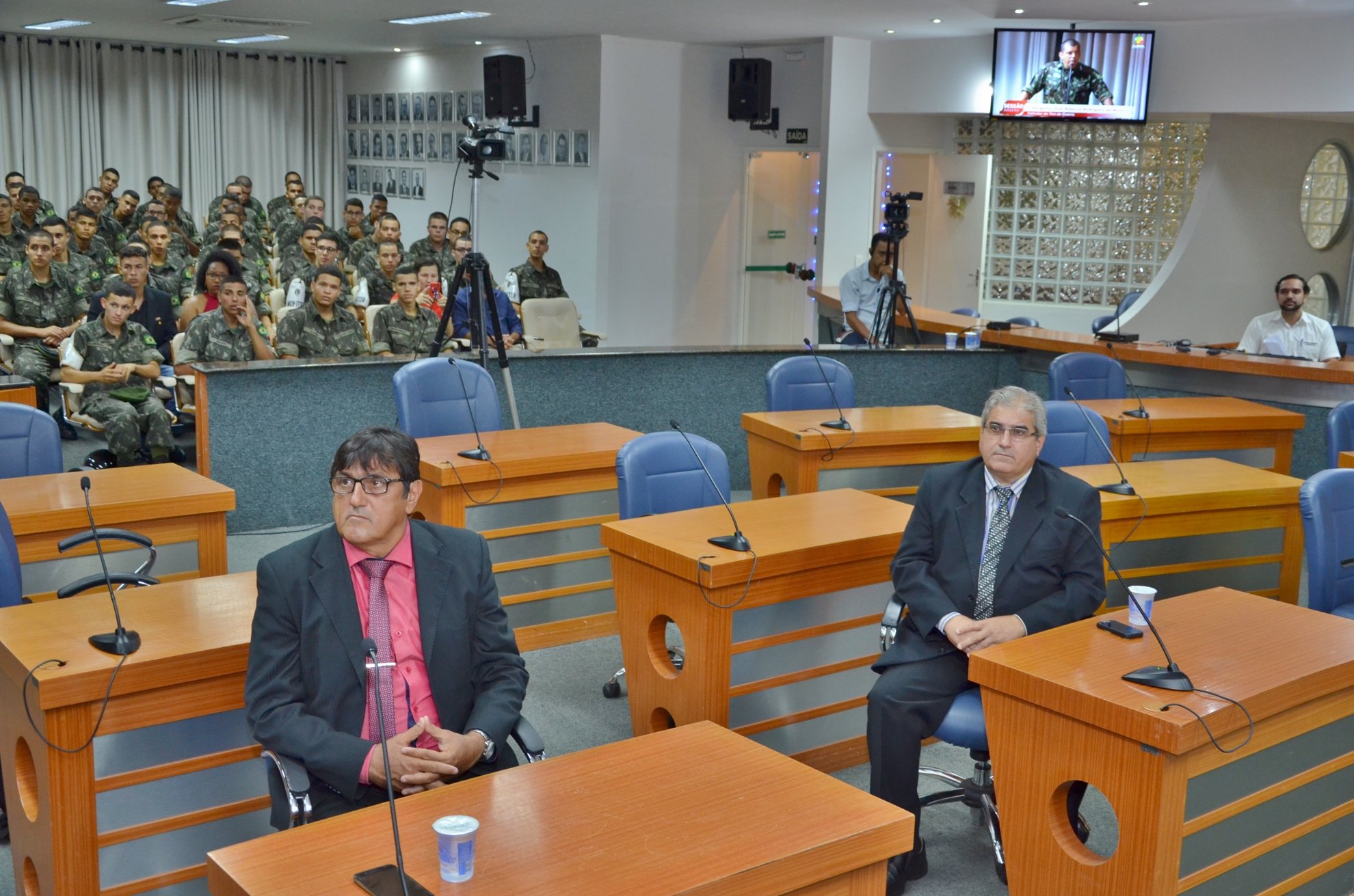 A solenidade foi conduzida pelo Presidente da Casa, Leandro Anastácio (SD) e contou com a presença do Chefe da Instrução do Tiro de Guerra, Subtenente Lino de Oliveira Abreu; do Instrutor 1º Sargento José Roberto Rodrigues de Melo; a Tenente do Hospital de Guarnição de Porto Velho/RO, Karina de Freitas Fogolin; e os vereadores Euripinho (PDT) e Kapetinha (PTB).