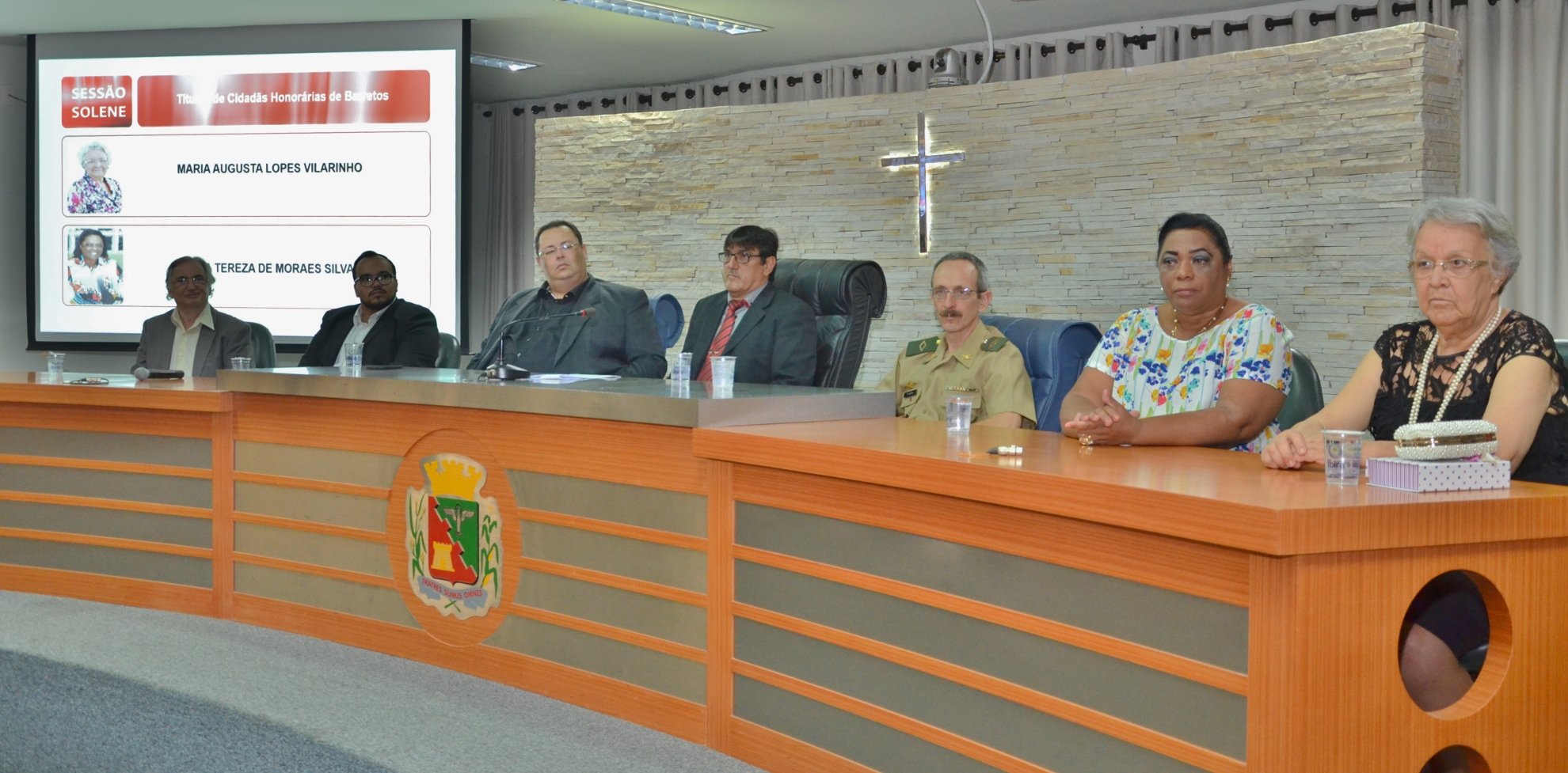 Aconteceu na noite desta terça, 22, na Câmara Municipal, Sessão Solene para homenagem a Maria Tereza de Moraes Silva e Maria Augusta Lopes Vilarinho, que receberam os Títulos de Cidadãs Honorárias de Barretos. O autor das homenagens é o Vereador Aparecido Donizete Alves Cipriano (PP).
