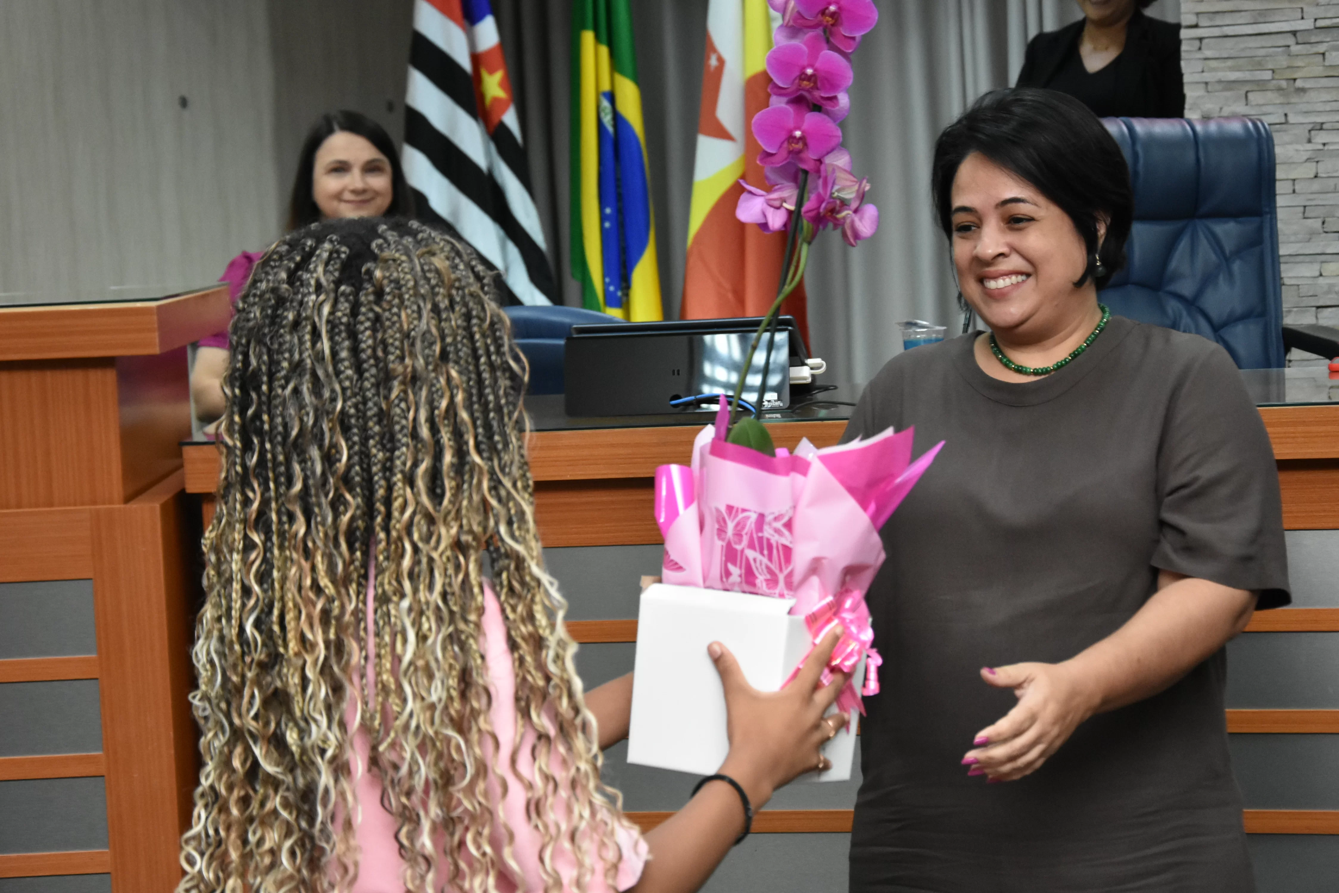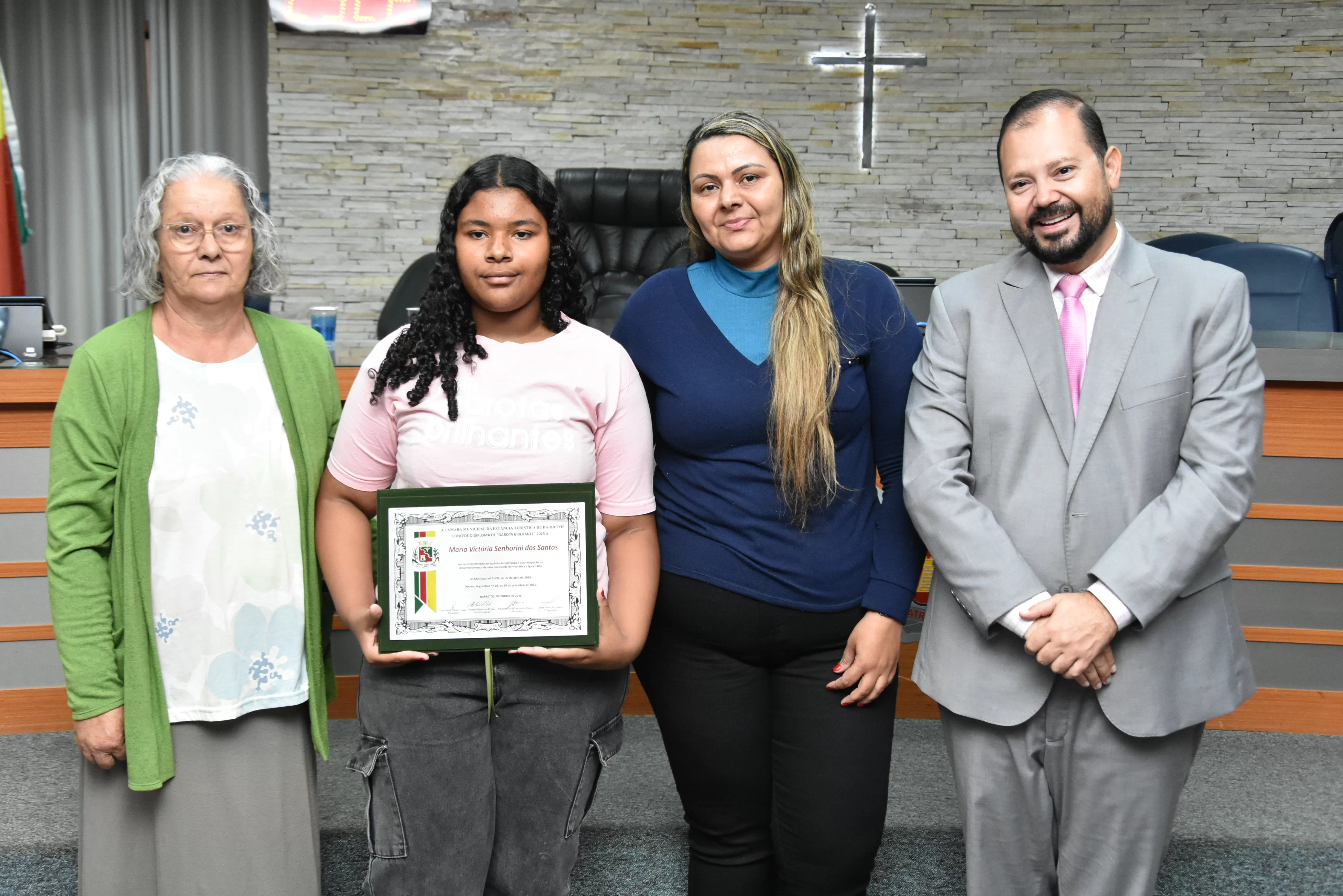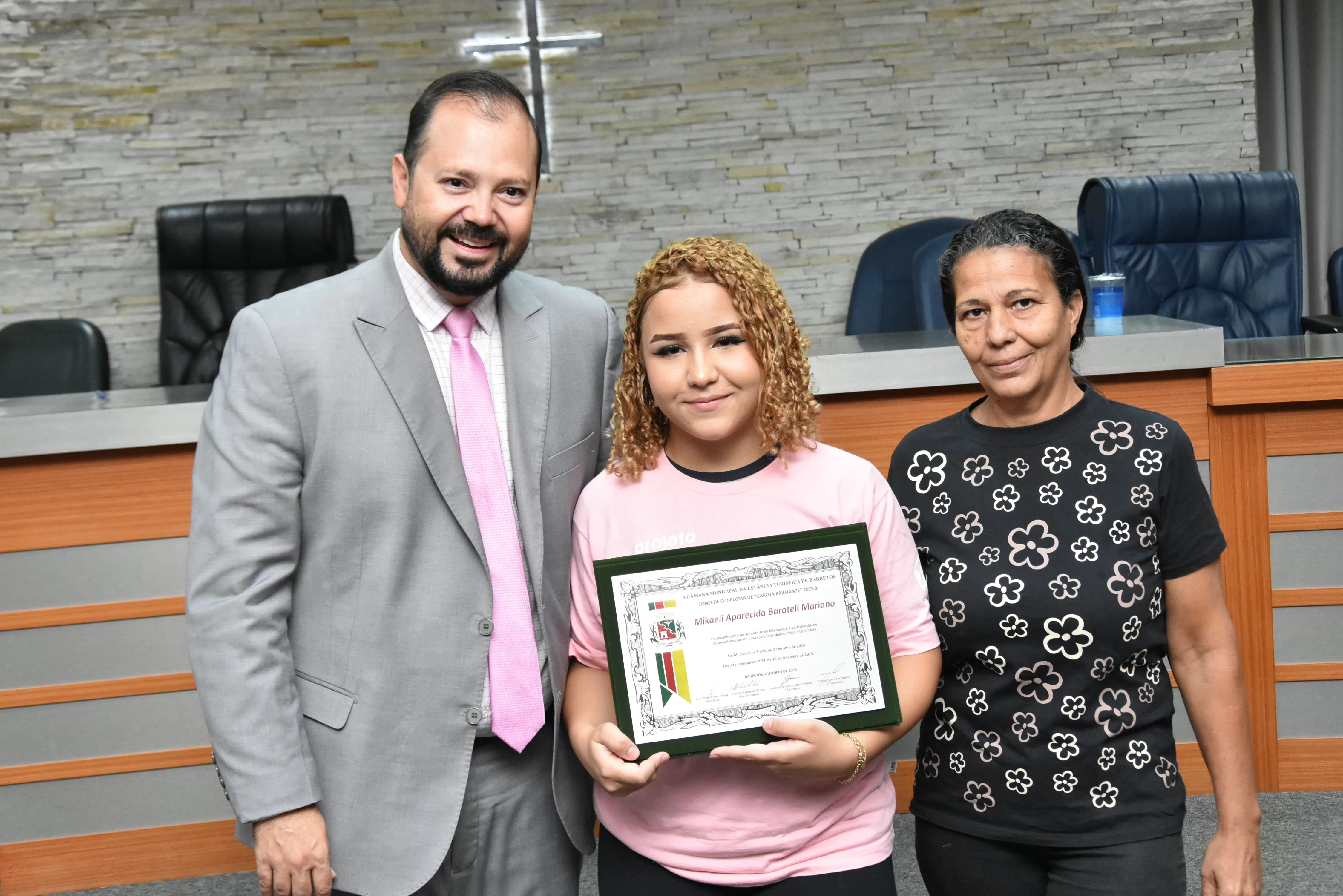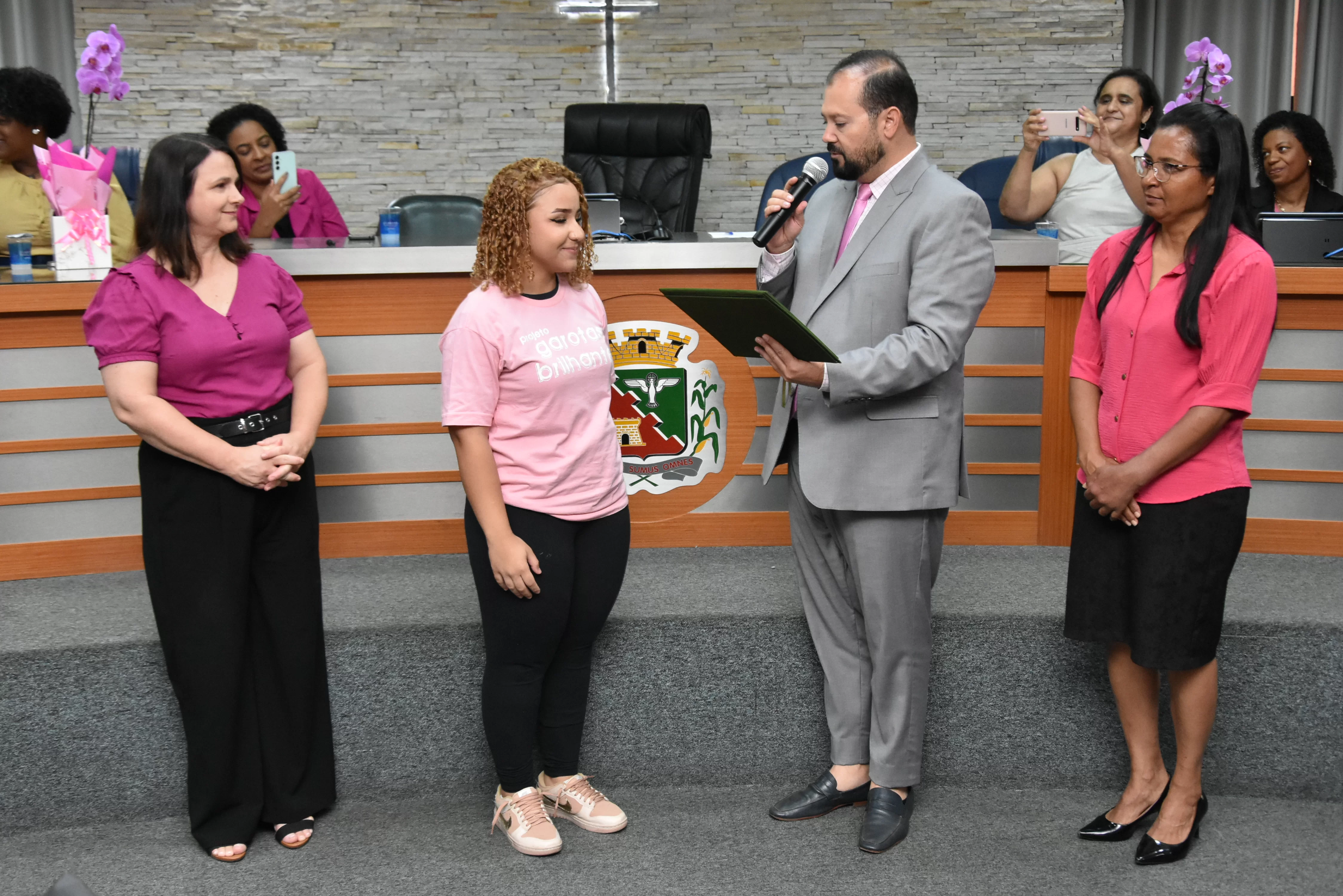 A solenidade foi conduzida pelo 2º Secretario da Câmara, Vereador Itamar Alves dos Santos (PSD) e contou ainda com presença do vereador Marcos Mariano (UNIÃO); da Coordenadora do CAAF -Centro Adventista de Apoio à Família de Barretos, Adriana Gonçalves Ferreira; da Assistente Social do Projeto Garotas Brilhantes, Pâmela Camargo; da Coordenadora Regional da ADRA - Agência Adventista de Desenvolvimento e Recursos Assistenciais, Estela Maris Miller Reis; da Diretora da Escola Estadual Mario Vieira Marcondes (local onde funciona o projeto Garotas Brilhantes); Marta Regina Rocha, Secretária Municipal de Assistência Social e Desenvolvimento Humano, Juliana Adão.