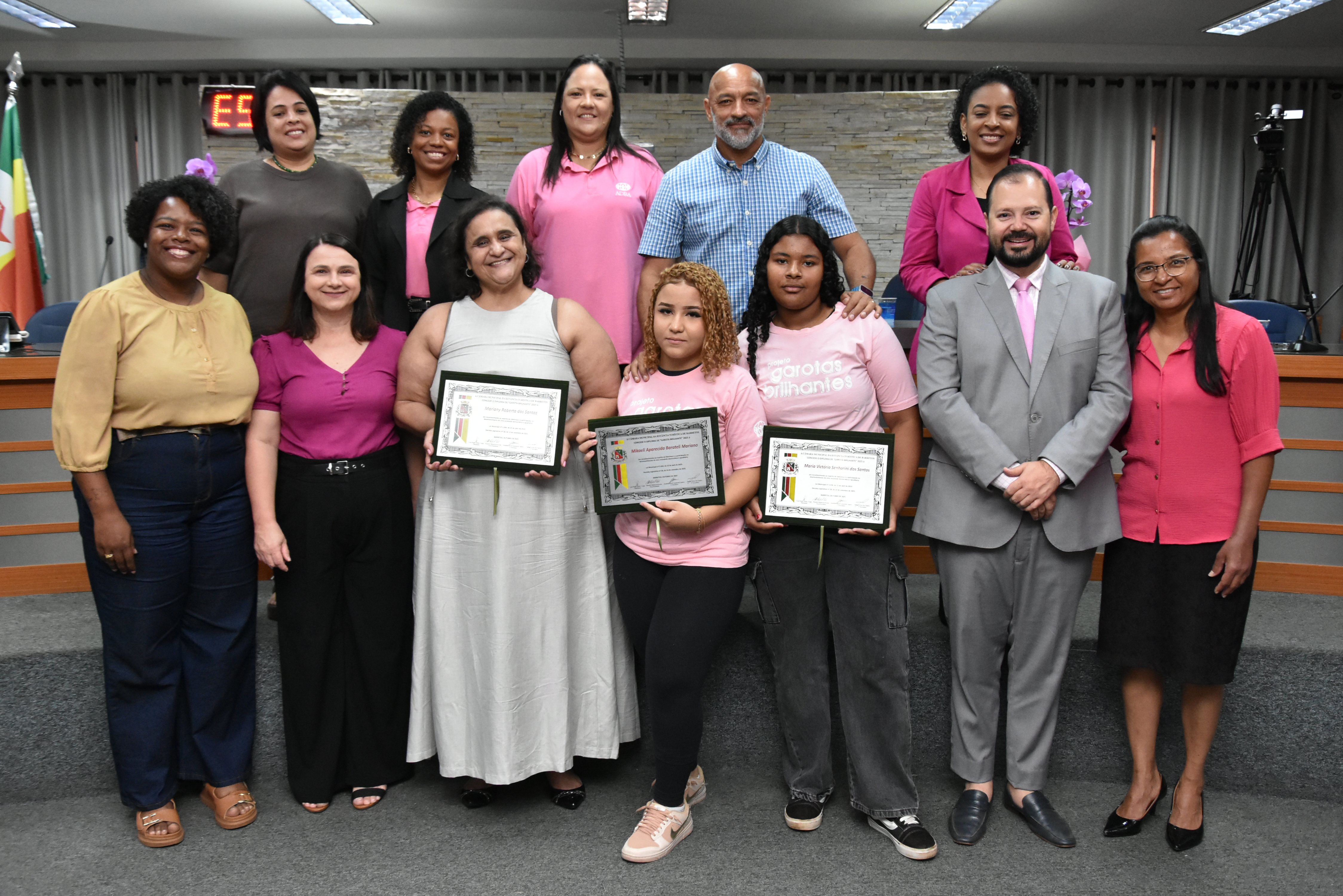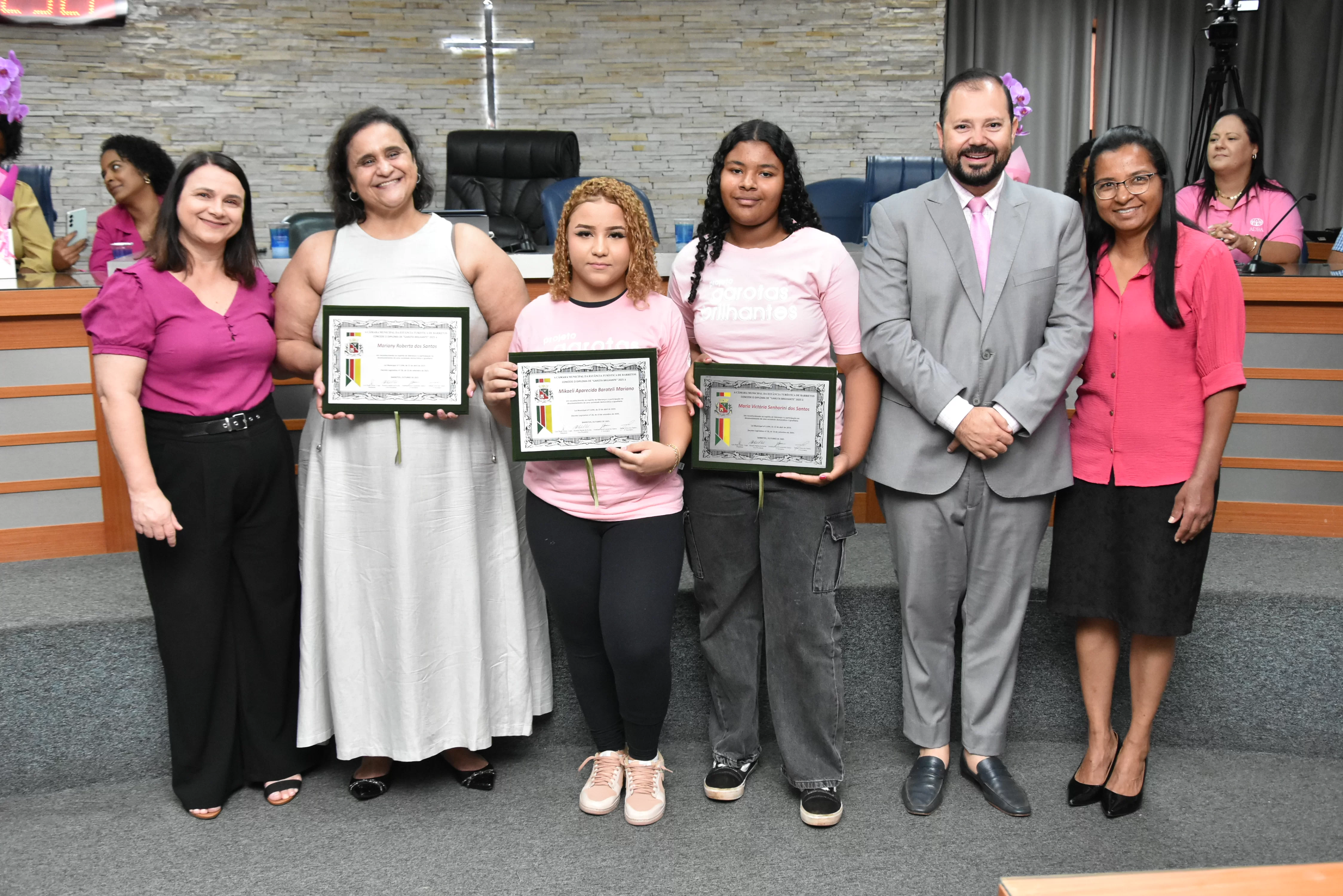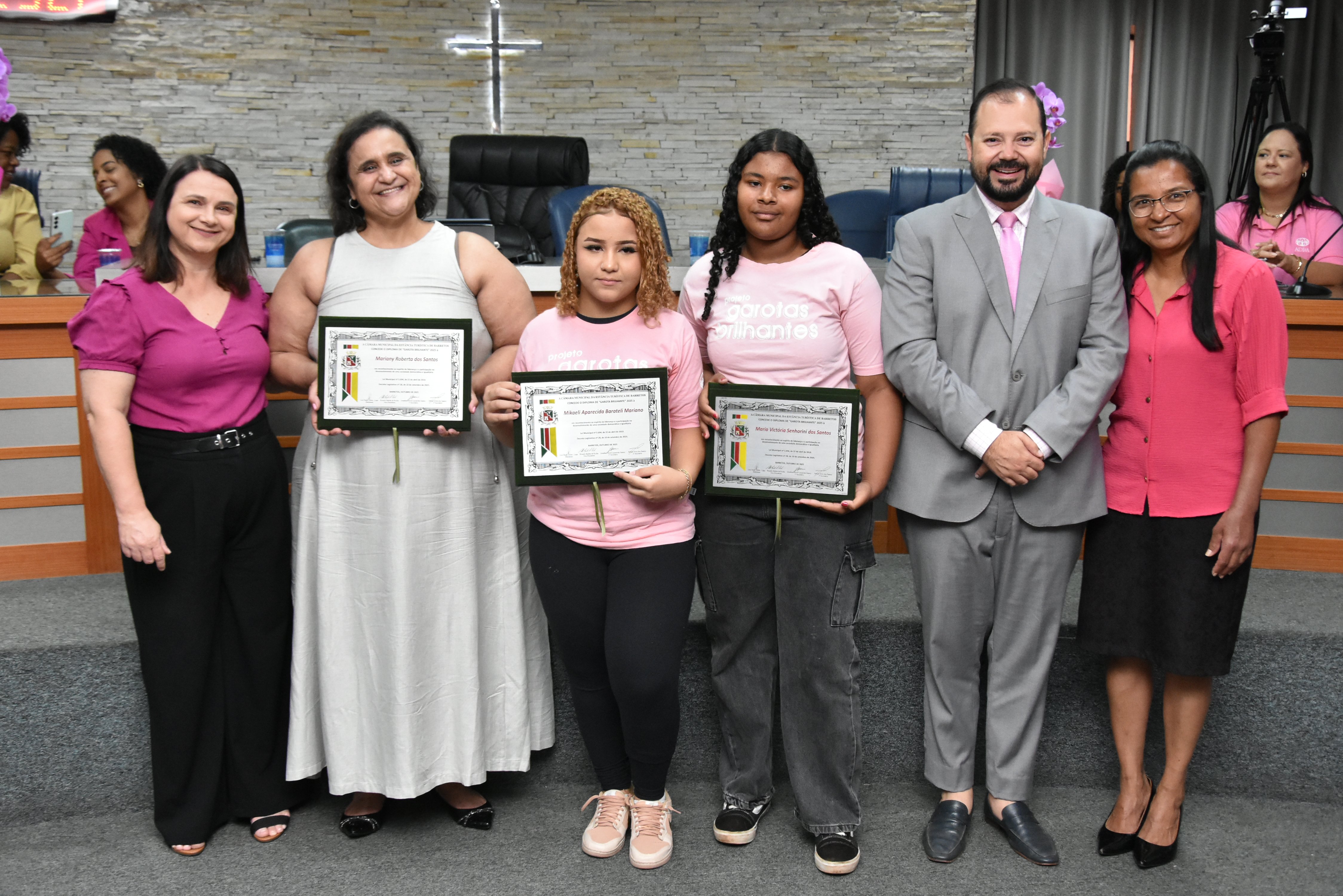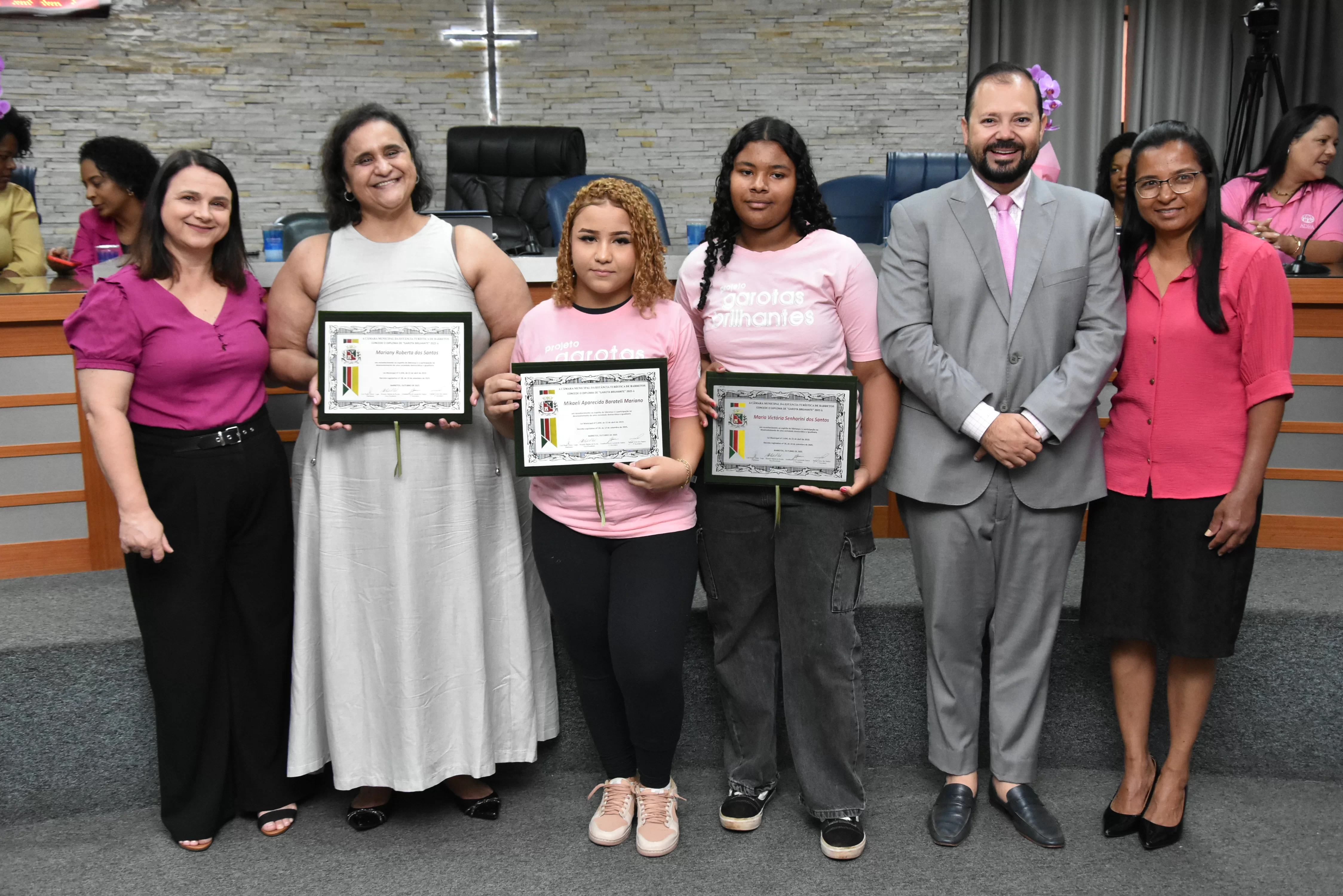 Na manhã de terça-feira (14 de outubro), a Câmara realizou Sessão Solene para entrega dos diplomas às meninas do projeto "Garotas Brilhantes", voltado a jovens que se destacaram ao longo do ano em projeto social de Barretos ligado à ADRA -Agência Adventista de Desenvolvimento e Recursos Assistenciais e ao CAAF - Centro Adventista de Apoio à Família de Barretos.