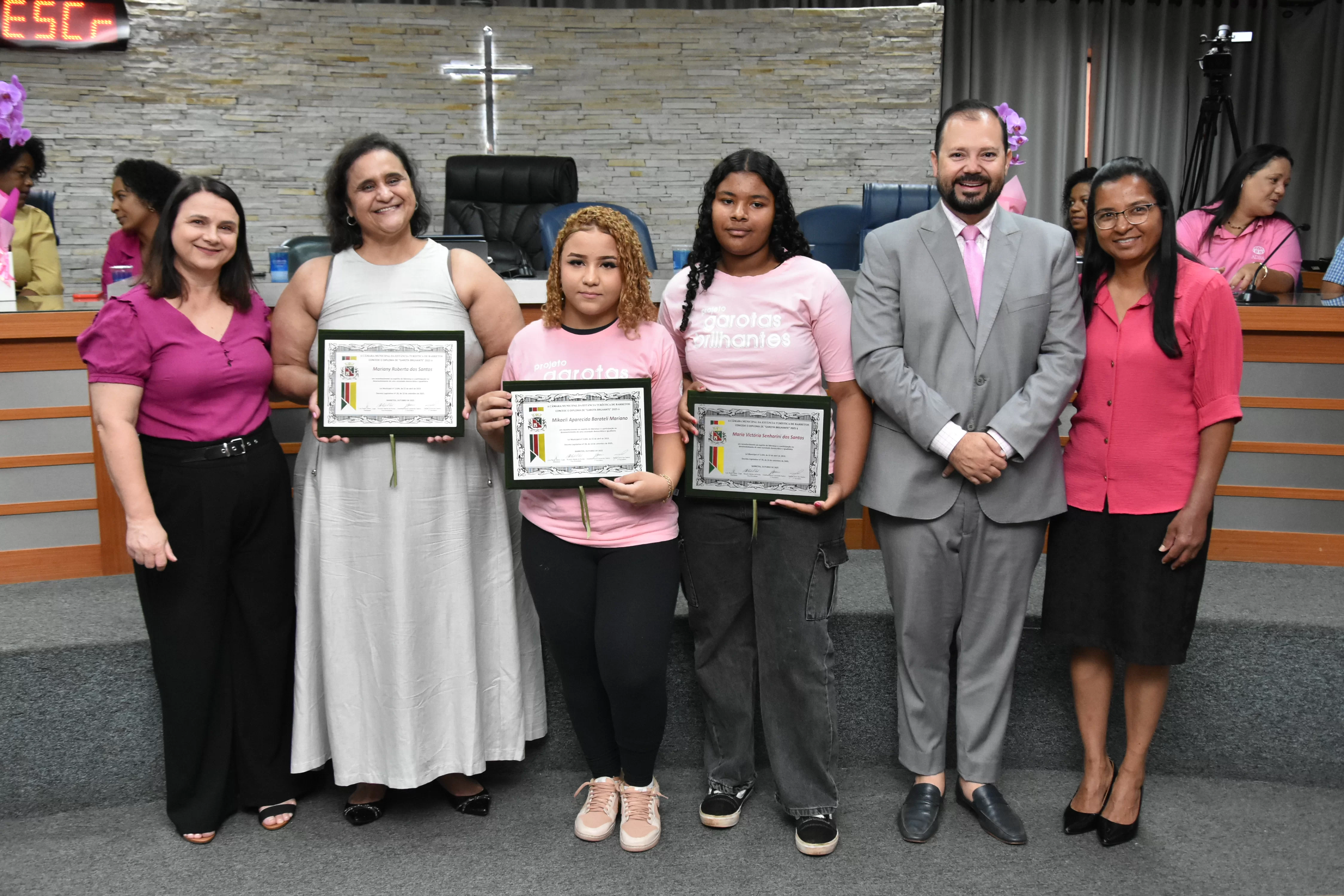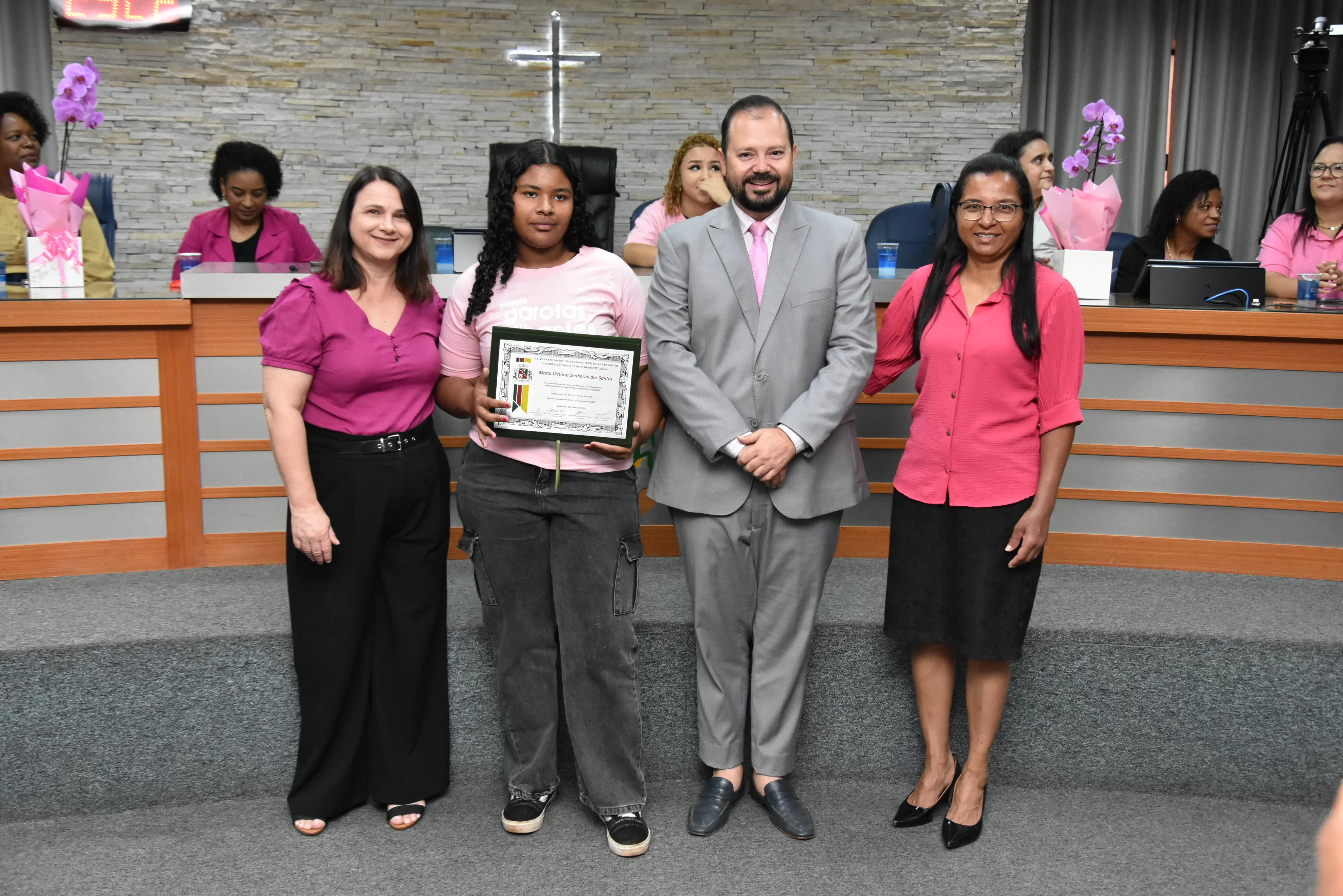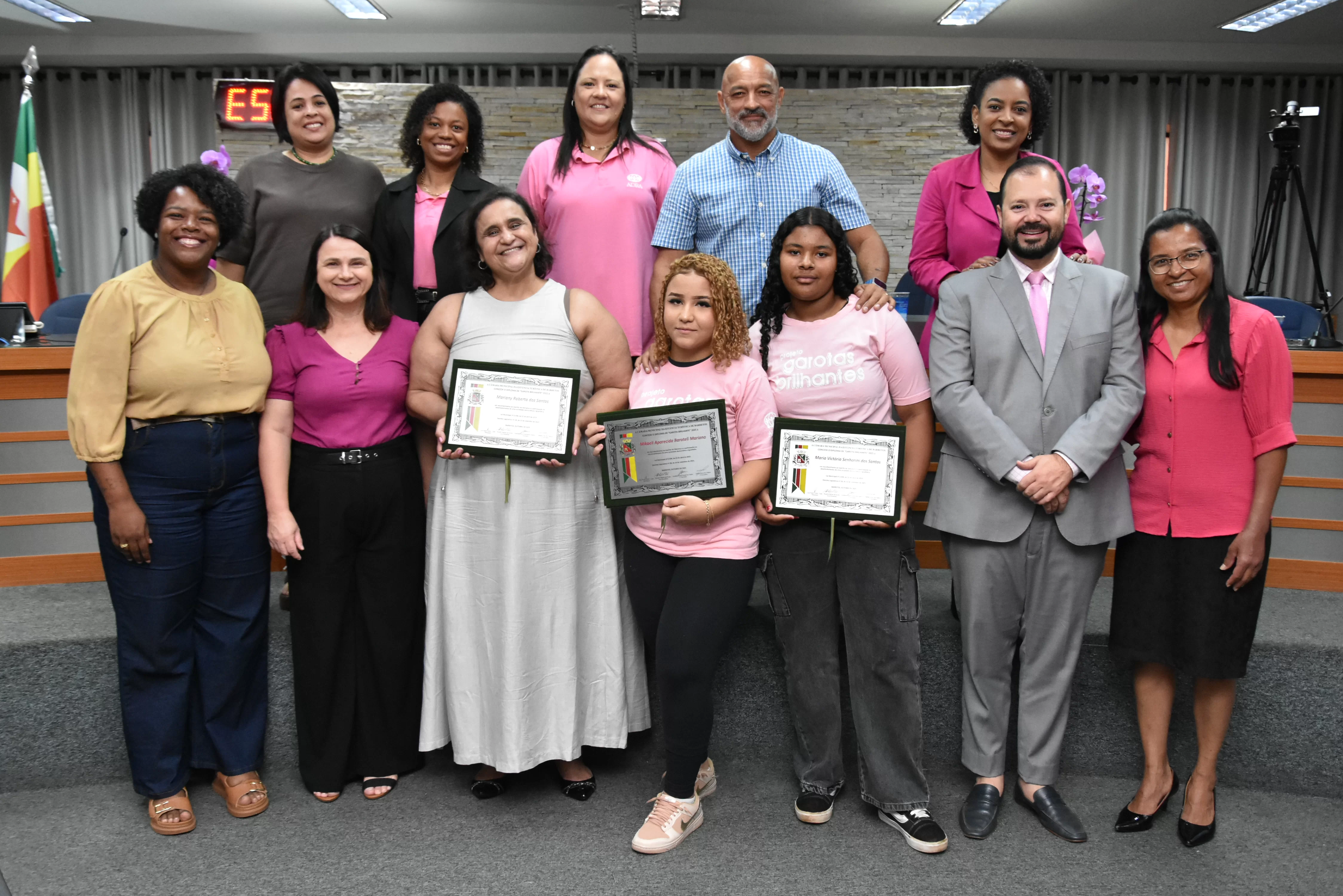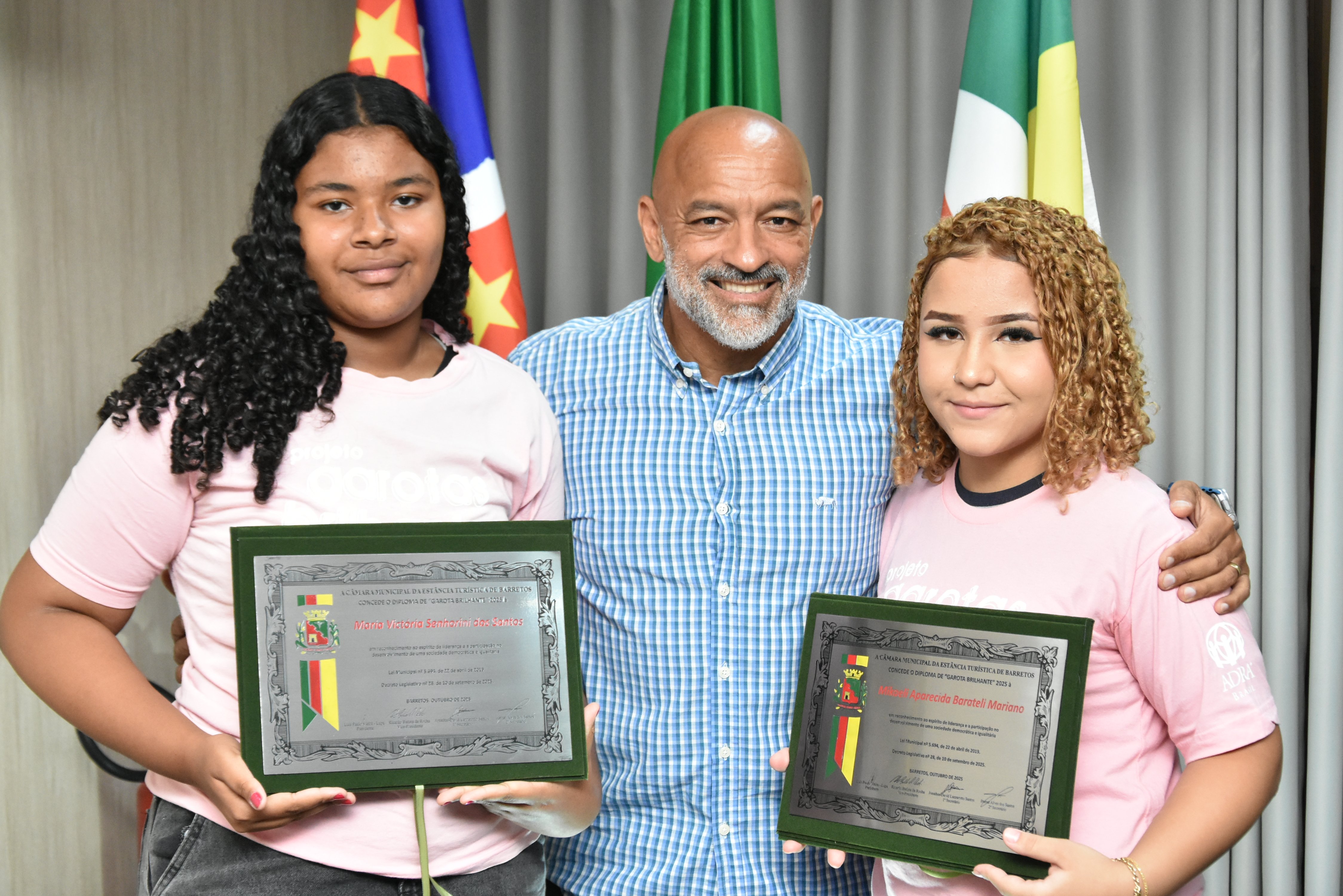 Na manhã de terça-feira (14 de outubro), a Câmara realizou Sessão Solene para entrega dos diplomas às meninas do projeto "Garotas Brilhantes", voltado a jovens que se destacaram ao longo do ano em projeto social de Barretos ligado à ADRA -Agência Adventista de Desenvolvimento e Recursos Assistenciais e ao CAAF - Centro Adventista de Apoio à Família de Barretos.