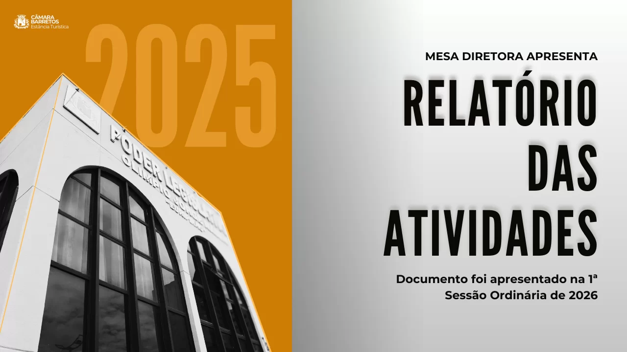 A Mesa Diretoria da Câmara Municipal 2025/2026 apresentou o relátorio das atividades legislativas realizadas no exercício de 2025, para ciência dos vereadores, na primeira sessão ordinária de 2026.