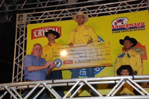 O presidente da Câmara Municipal, Paulo Correa, prestigiou na noite deste domingo (13) a final da 12ª Festa dos Campeões de Barretos, que aconteceu na Arena Jockey Clube. O vereador entregou o prêmio ao primeiro colocado, o competidor Leandro Baldissera, na modalidade Sela Americana.