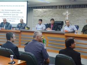 A Câmara Municipal realizou na noite desta quinta, 13, a Sessão Solene para entrega dos Diplomas de Policial do ano 2018. Foram homenageados representantes de diversas categorias de policiais que se destacaram no exercício das atividades em Barretos.