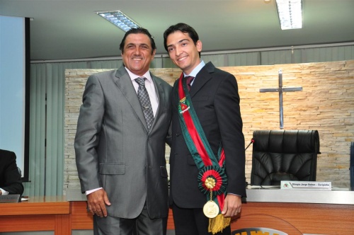 O Vereador Euripinho, mais votado na eleição de 07 de outubro de 2012, dirigiu a Sessão de Posse, realizou o juramento e colocou a faixa no chefe do Executivo.
