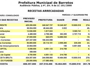 Na noite desta terça-feira, 29, a Prefeitura de Barretos apresentou, durante Audiência Pública, na Câmara Municipal, os dados financeiros do Município, referentes ao 2º quadrimestre de 2015.