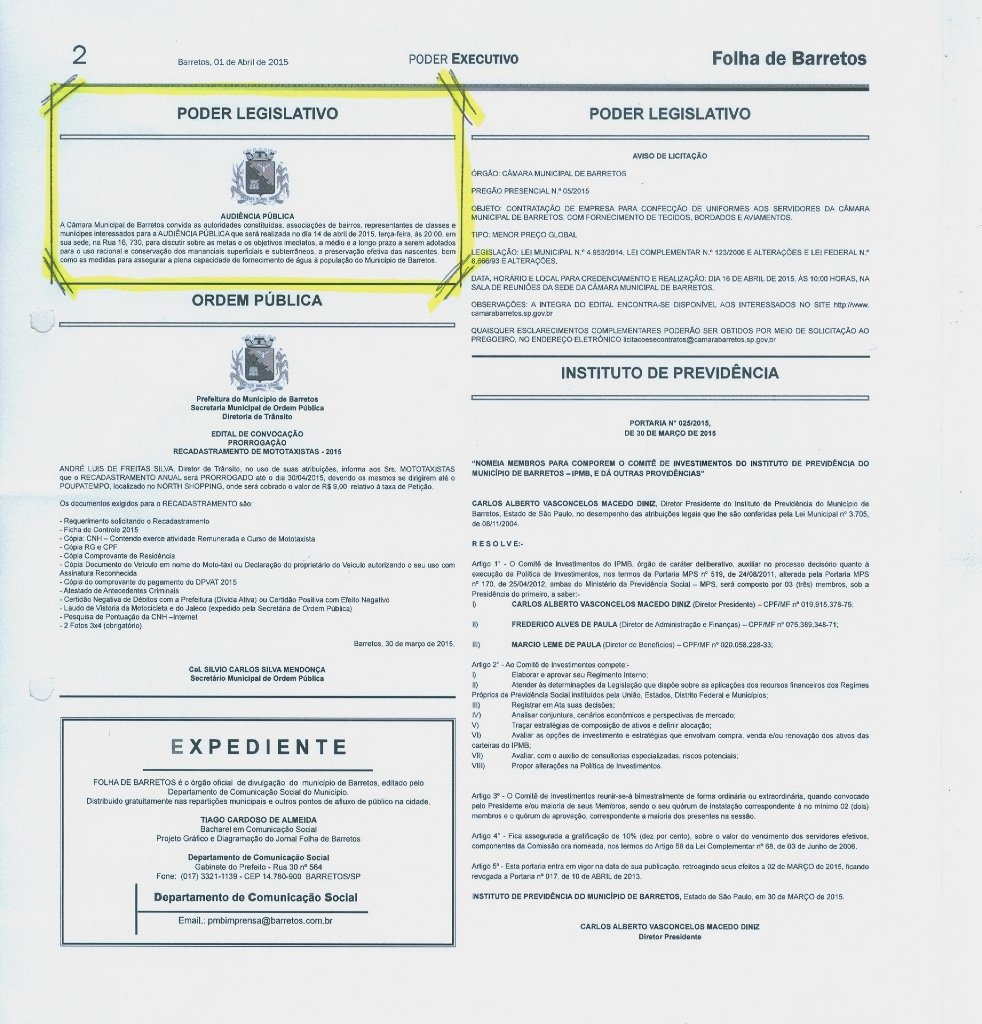 No requerimento de Paulo Correa, além da população, é solicitado que várias autoridades sejam convidadas para participar da audiência, entre elas: técnicos do Departamento de Águas e Energia Elétrica – DAEE, BPG/PGEB – Escritório de Apoio Técnico de Barretos; o Gerente da Agência Ambiental de Barretos – CETESB, Davi Faleiros; o Superintendente do Serviço Autônomo de Água e Esgoto de Barretos – SAAEB, Sílvio de Brito Ávila; o Secretário do Planejamento e Desenvolvimento Físico Territorial, Ronaldo Luiz de Ávila Câmara; o Consultor Ambiental, Luiz Antônio Batista da Rocha; o especialista em direito ambiental, José Henrique de Freitas; o Superintendente Estadual do Departamento Nacional de Produção Mineral – DNPM, Ricardo de Oliveira Moraes; a Promotora da 3ª Promotoria de Justiça e do Meio Ambiente do Estado de São Paulo, Adriana Nogueira Franco; o ; o Secretário Municipal do Meio Ambiente, Marco Antônio Carvalho, o engenheiro civil, Luís Di Bernardo e o Prefeito Municipal, Guilherme Henrique de Ávila.