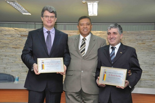 Realizada na noite de sexta, dia 9, a sessão solene para entrega de dois títulos de Cidadão Honorário, propostos pelo vereador Reginaldo da Silva (PR), foi presidida pelo vereador Juninho Leite e contou com a presença do prefeito Emanoel Mariano Carvalho, e do diretor do Campus Barretos do IFSP, Victor Brum. Os homenageados foram o reitor do IFSP, Arnaldo Augusto Ciquielo Borges, e o pró-reitor de extensão, Garabed Kenchian, conforme os Decretos Legislativos nº 10/2010 e 11/2011.