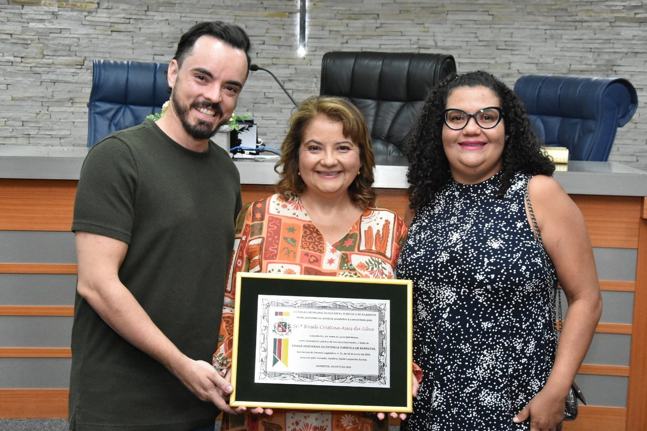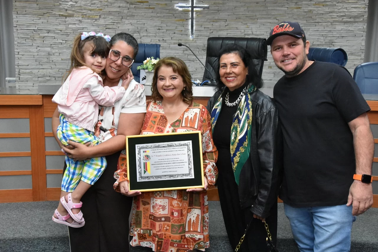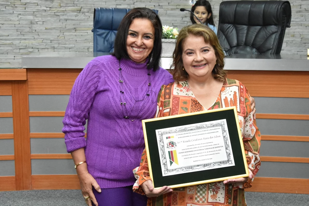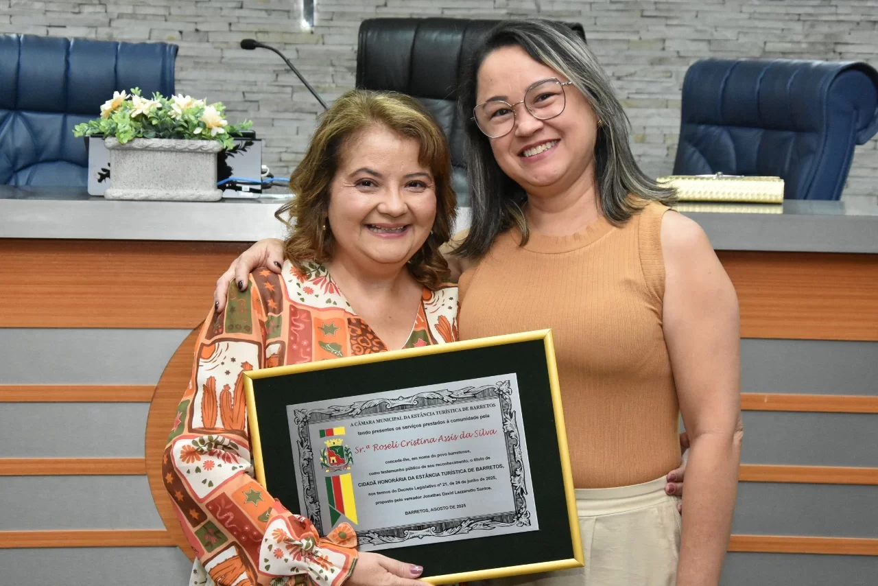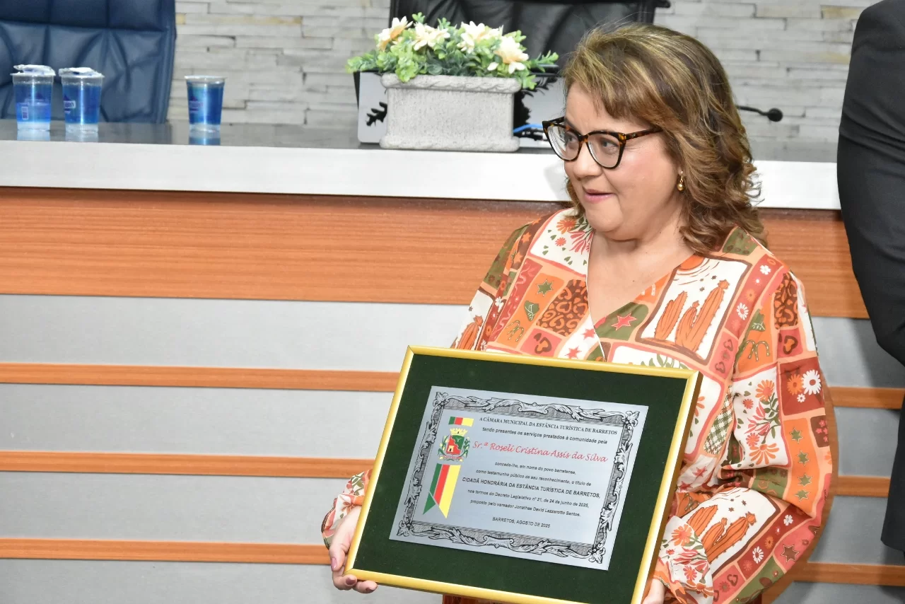 A Especialista em Educação e Gestão Pública, Roseli Cristina Assis da Silva recebeu o Título de Cidadã Honorária da Estância Turística de Barretos em Sessão Solene realizada na noite de sexta-feira (15 de agosto), na Câmara.