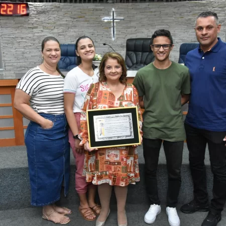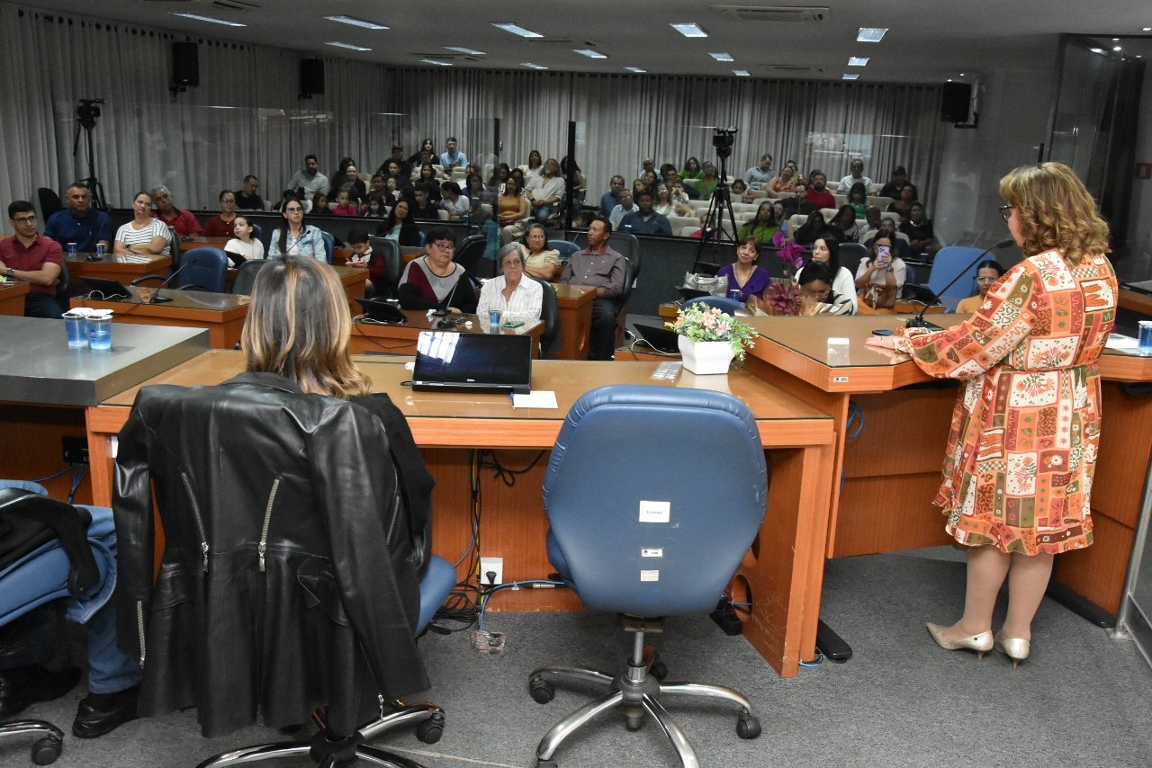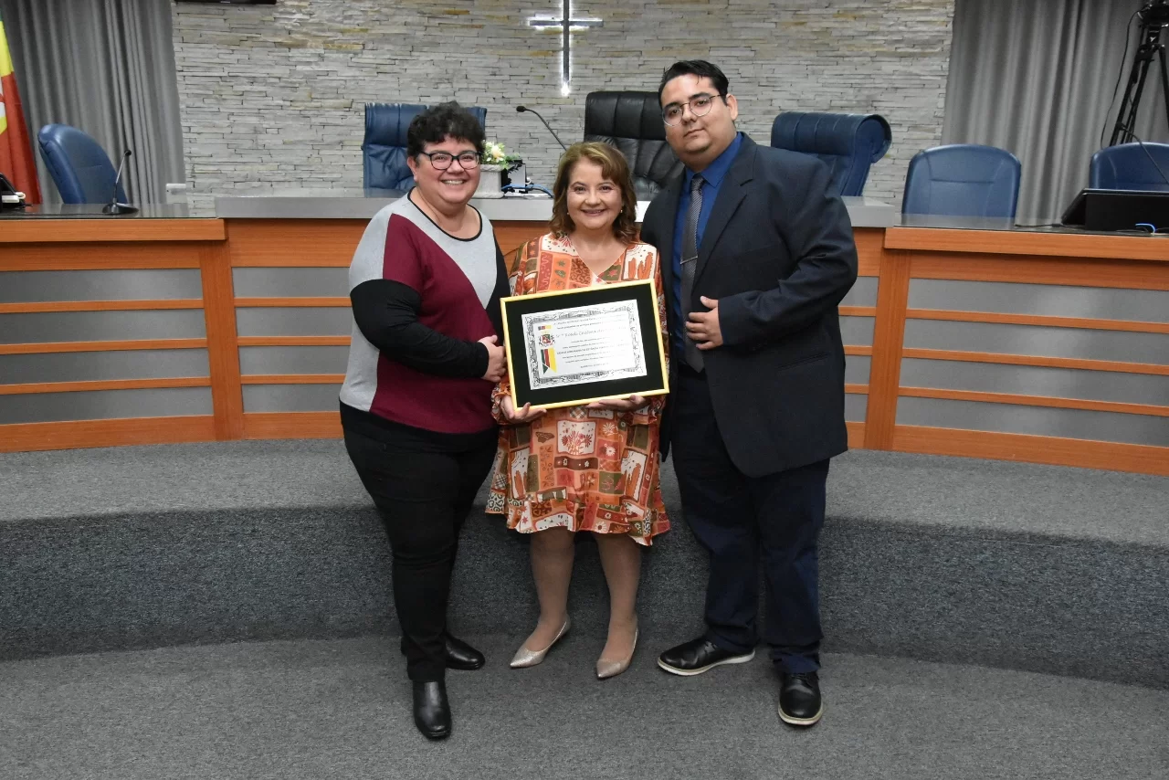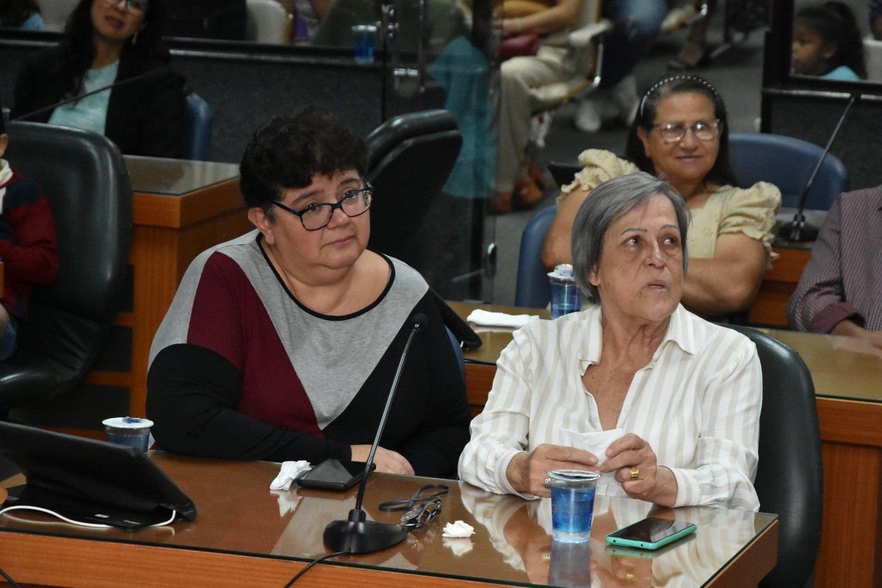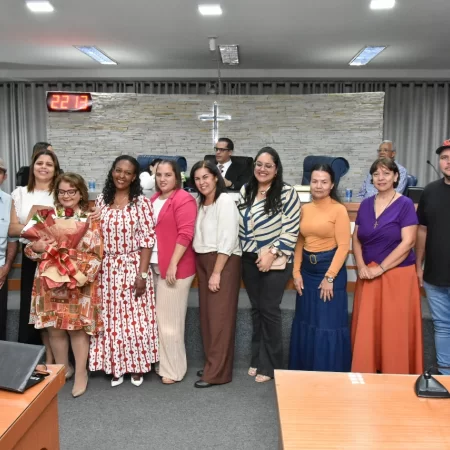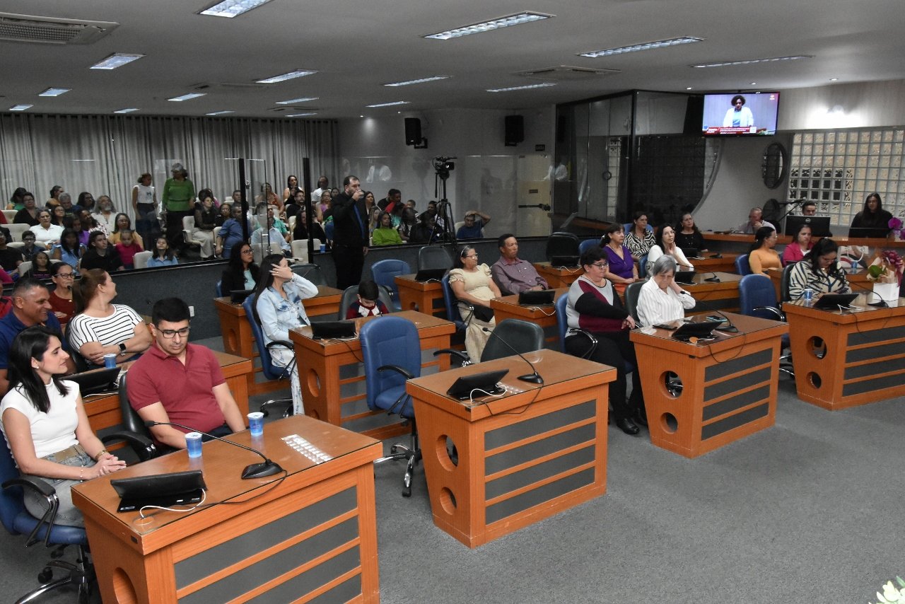 Familiares e amigos da homenageada, servidores da Secretaria Municipal de Educação e fiéis da Assembleia de Deus Ministério do Belém lotaram a Câmara para prestigiar o evento.