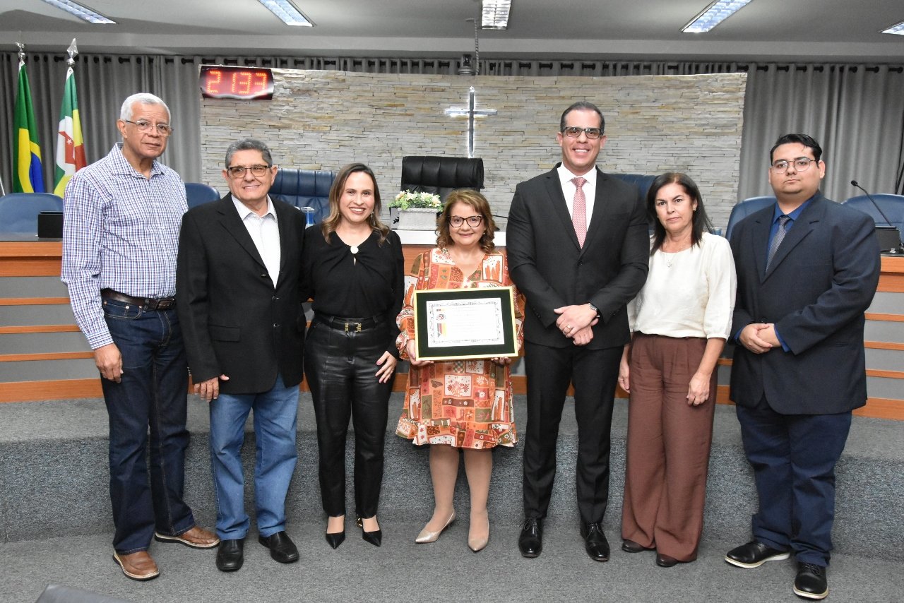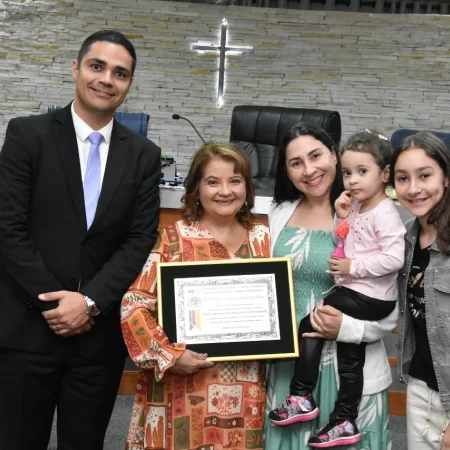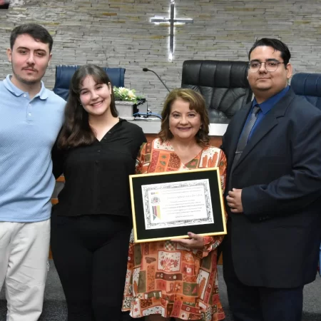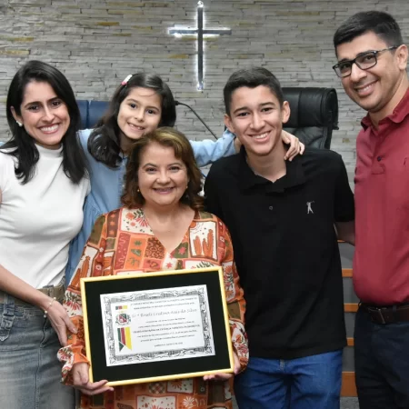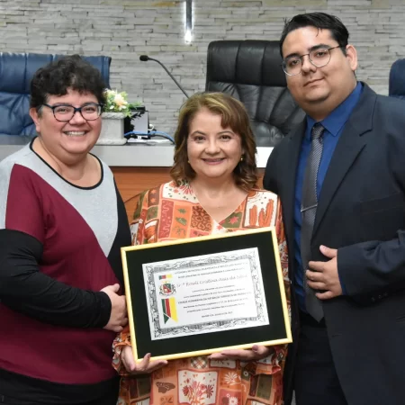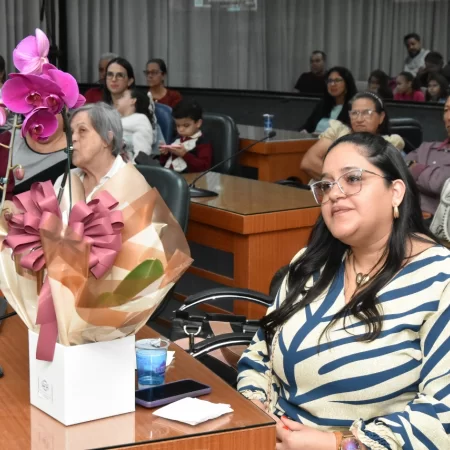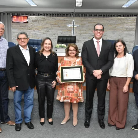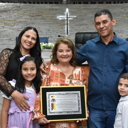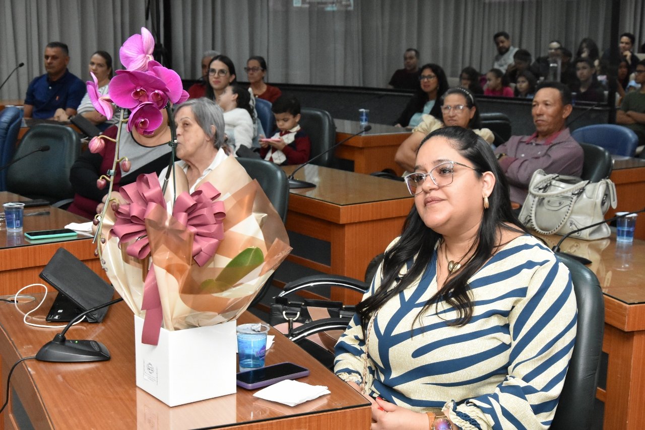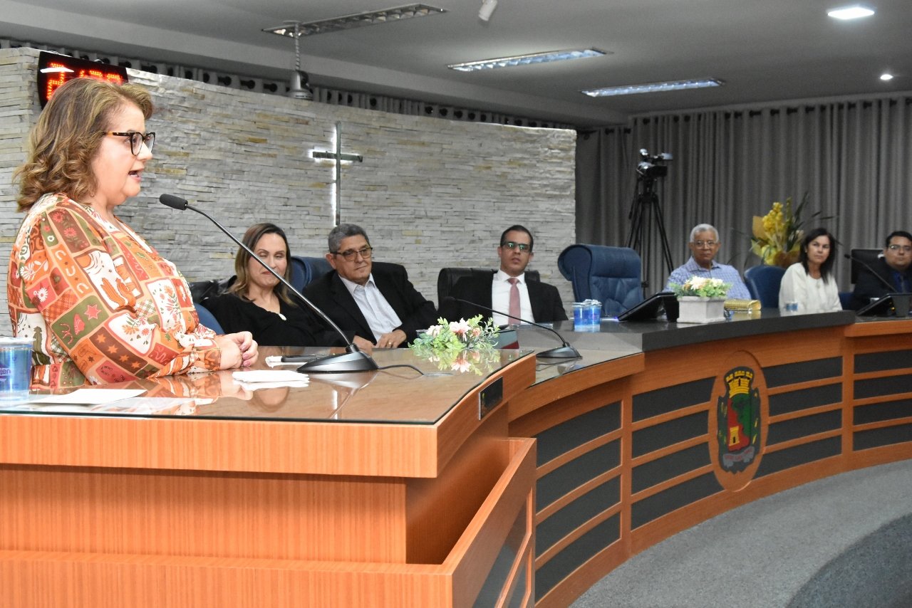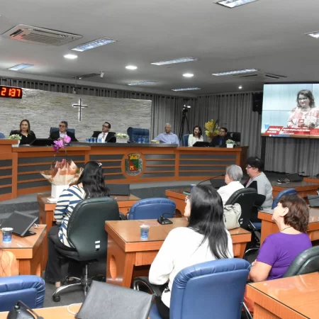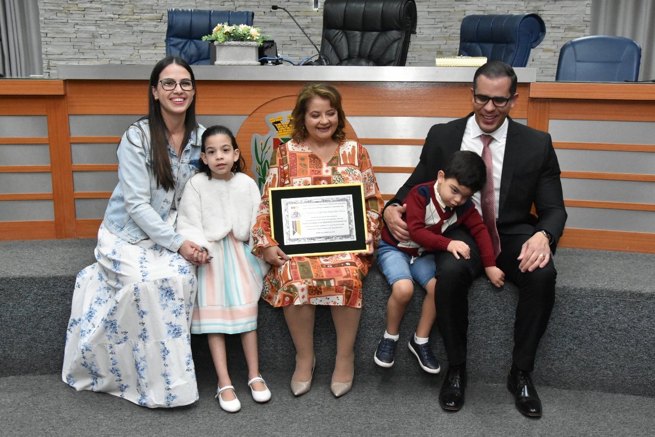 Familiares e amigos da homenageada, servidores da Secretaria Municipal de Educação e fiéis da Assembleia de Deus Ministério do Belém lotaram a Câmara para prestigiar o evento.