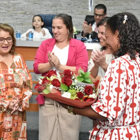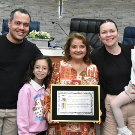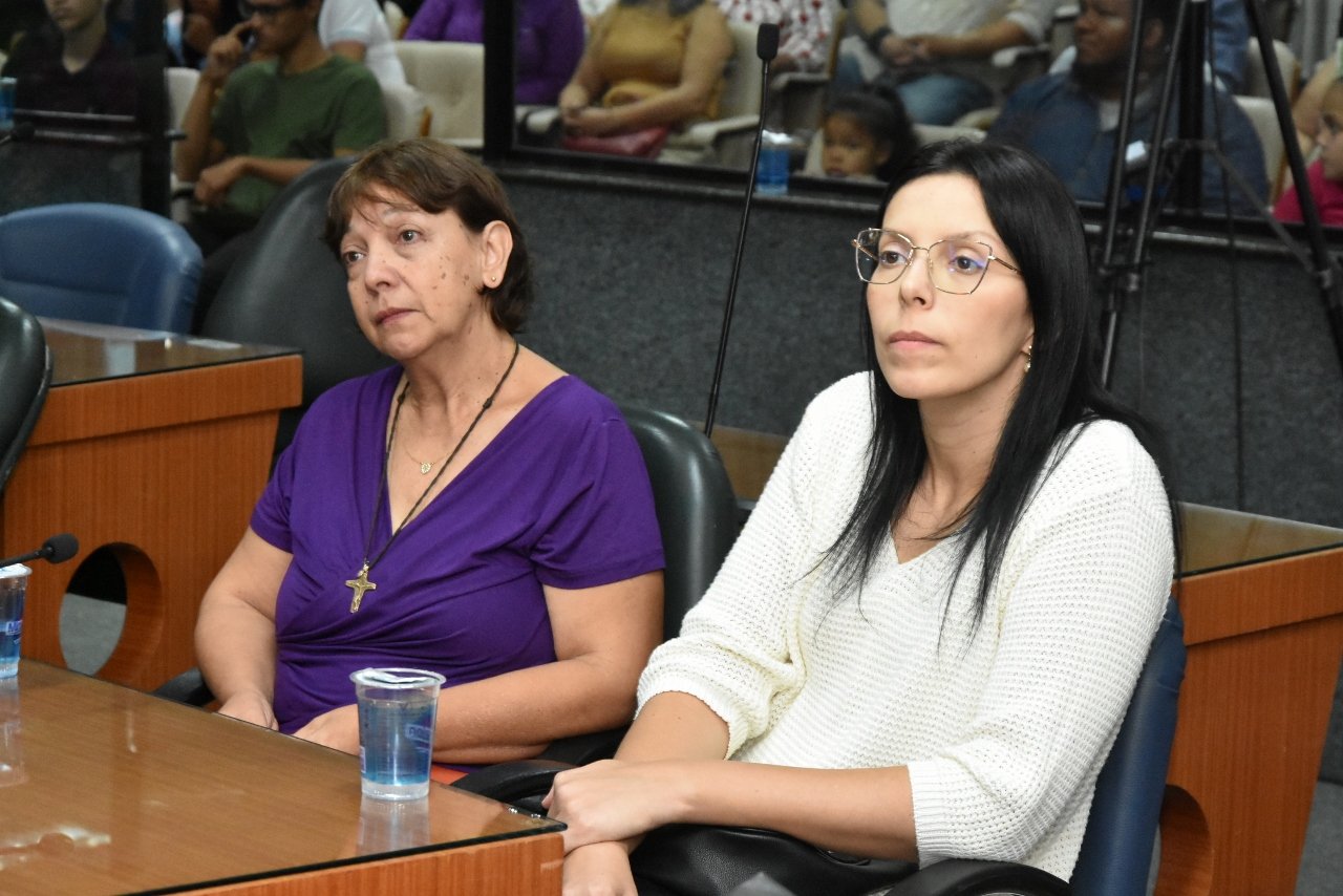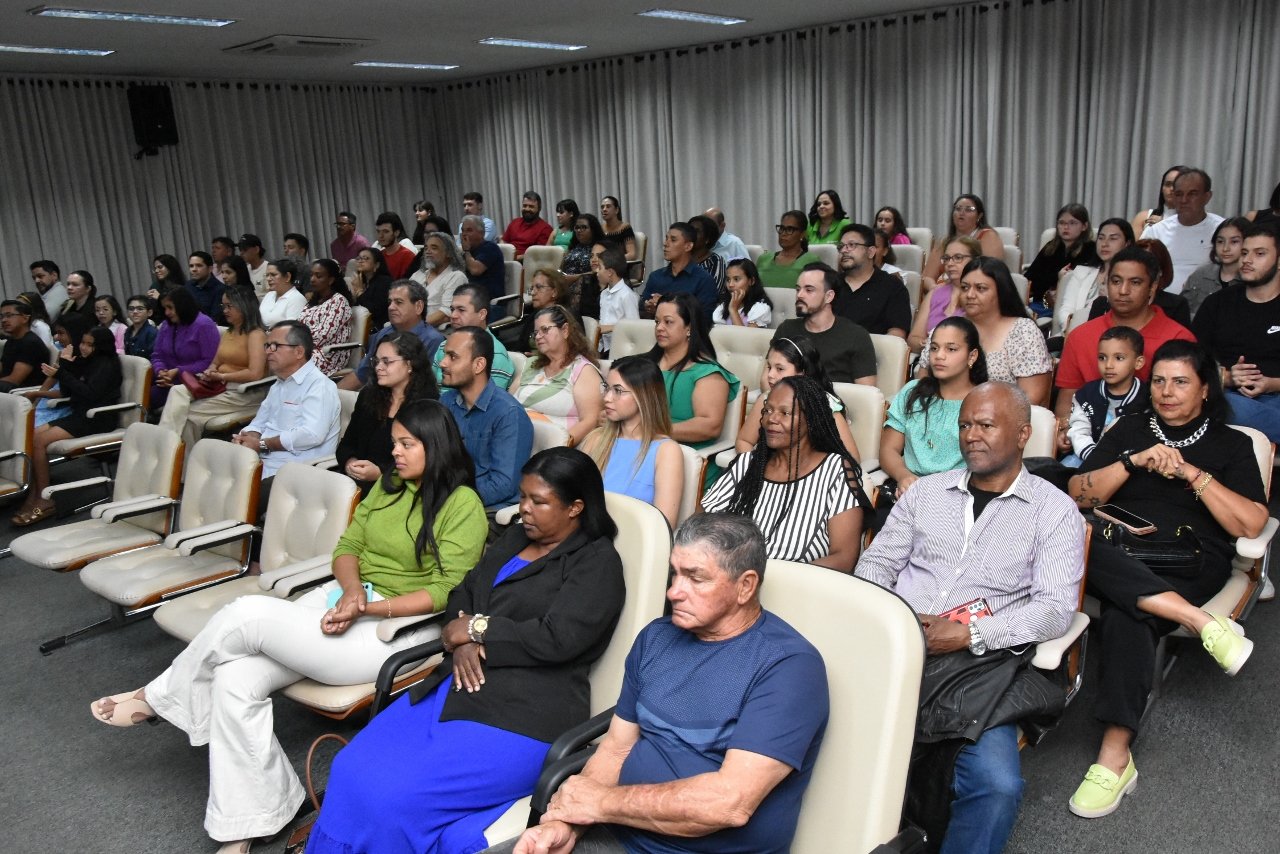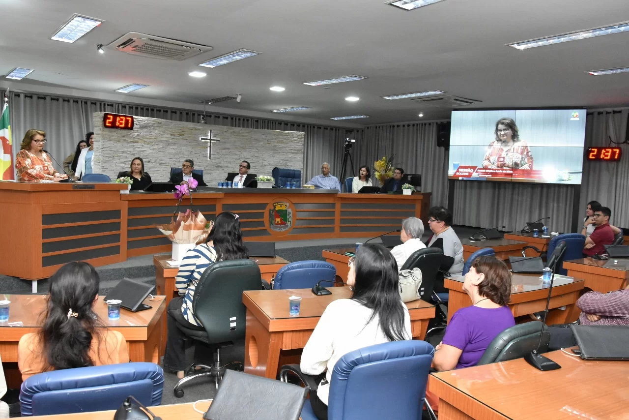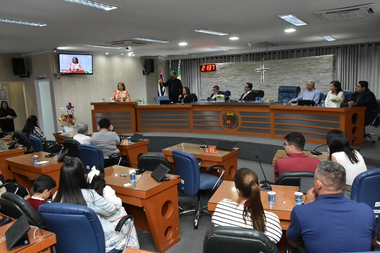 Familiares e amigos da homenageada, servidores da Secretaria Municipal de Educação e fiéis da Assembleia de Deus Ministério do Belém lotaram a Câmara para prestigiar o evento.