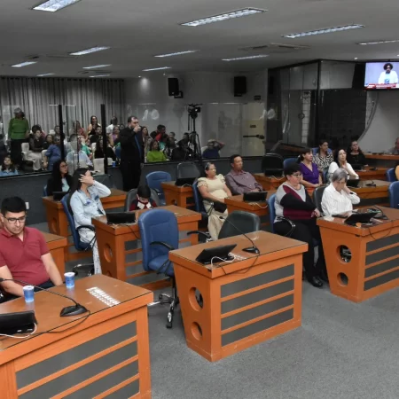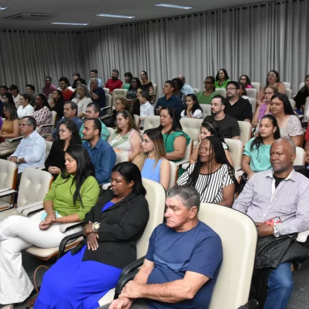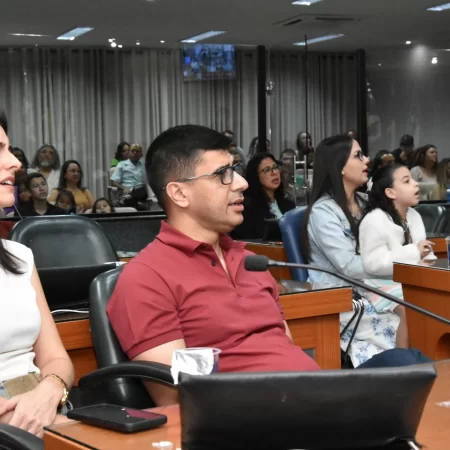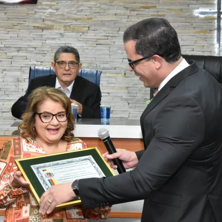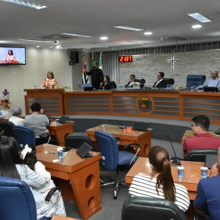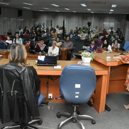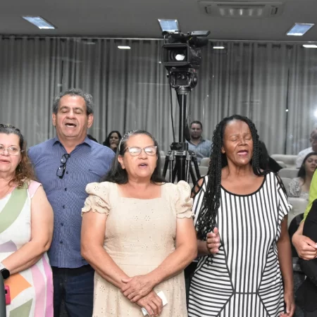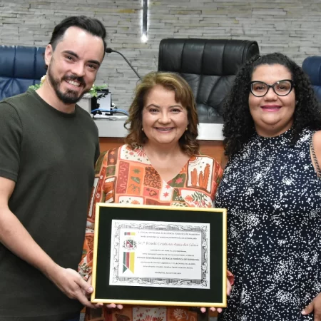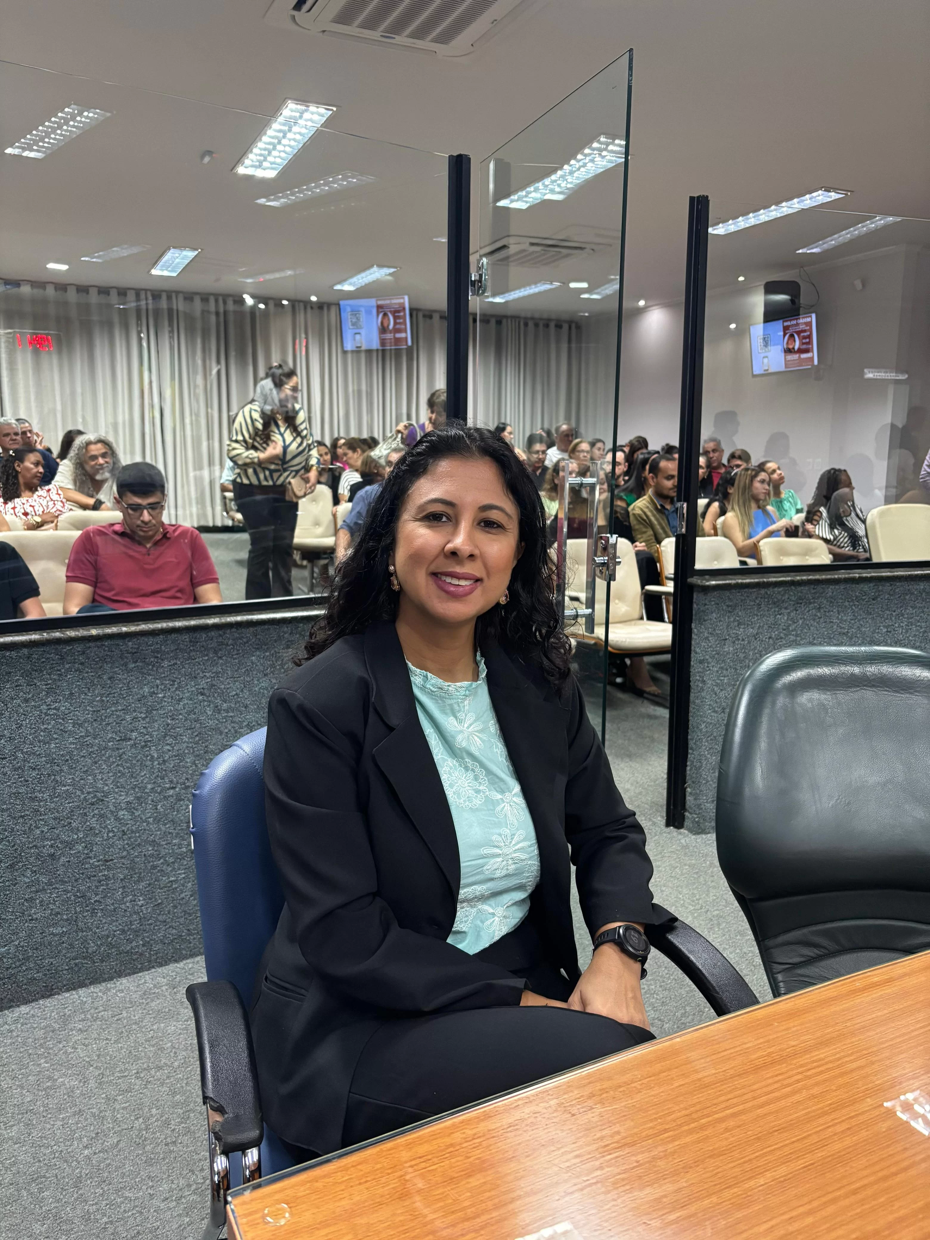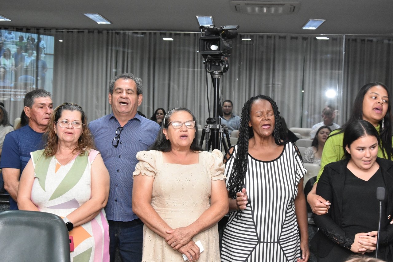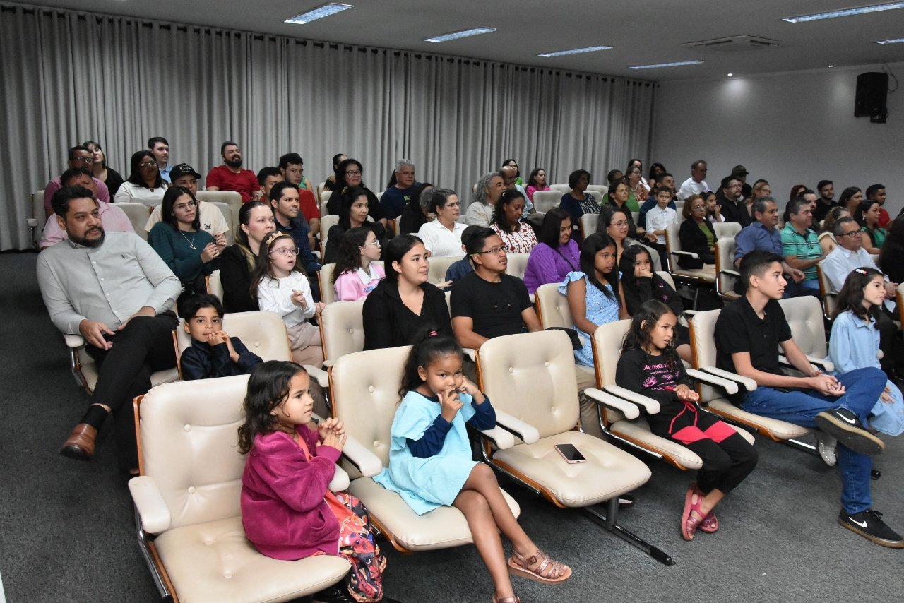 Familiares e amigos da homenageada, servidores da Secretaria Municipal de Educação e fiéis da Assembleia de Deus Ministério do Belém lotaram a Câmara para prestigiar o evento.