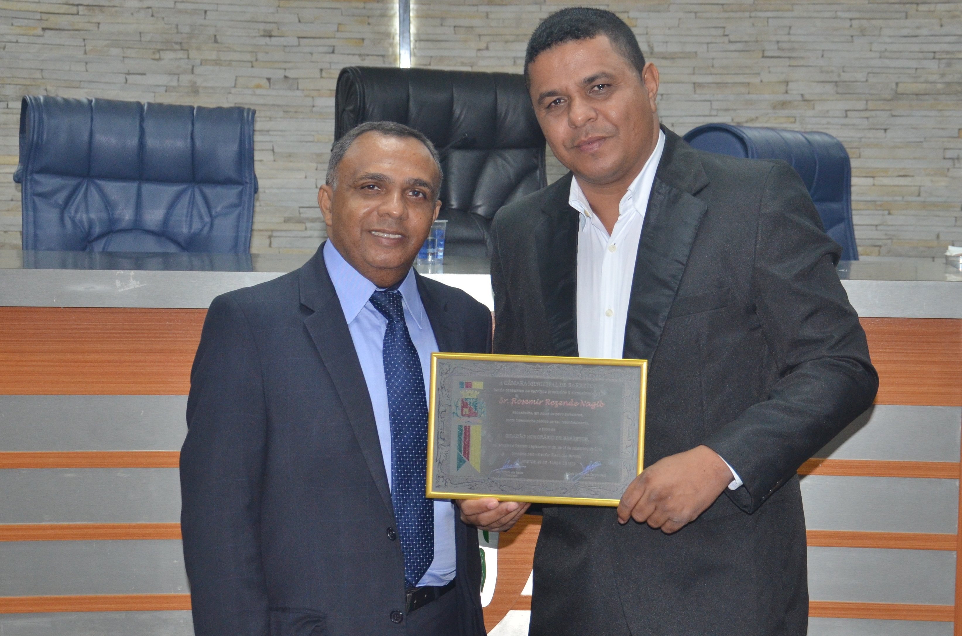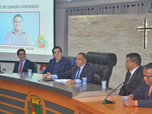 Com presença de grande público, a Câmara Municipal fez a entrega do Título de Cidadão Honorário de Barretos ao Senhor Rosemir Rezende de Nagib. O evento aconteceu na noite desta quinta, 22, por iniciativa do Vereador Elson dos Santos, autor do Projeto que concedeu a homenagem.