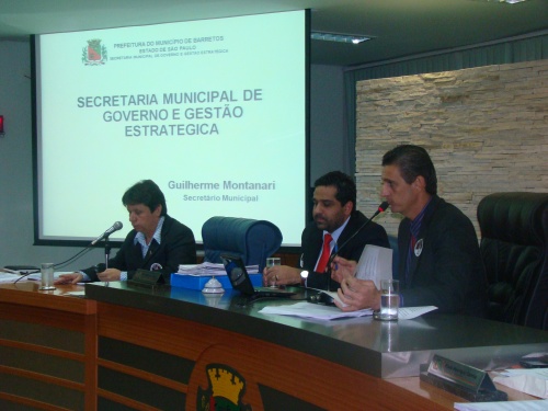 O secretário de Governo e Gestão Estratégica, Guilherme Montanari, atendendo solicitação feita pelo vereador Juninho Leite, em requerimento, compareceu na Câmara Municipal de Barretos, para para fazer uma discussão com os vereadores a respeito de projetos e obras que estão sendo realizadas pela Administração Municipal. Após a abertura dos trabalhos, o vereador Juninho Leite, fez a convocação do secretário que usou a tribuna por mais de 1 hora, para responder as perguntas formuladas por cada um dos 11 vereadores, representando as suas bancadas partidárias.