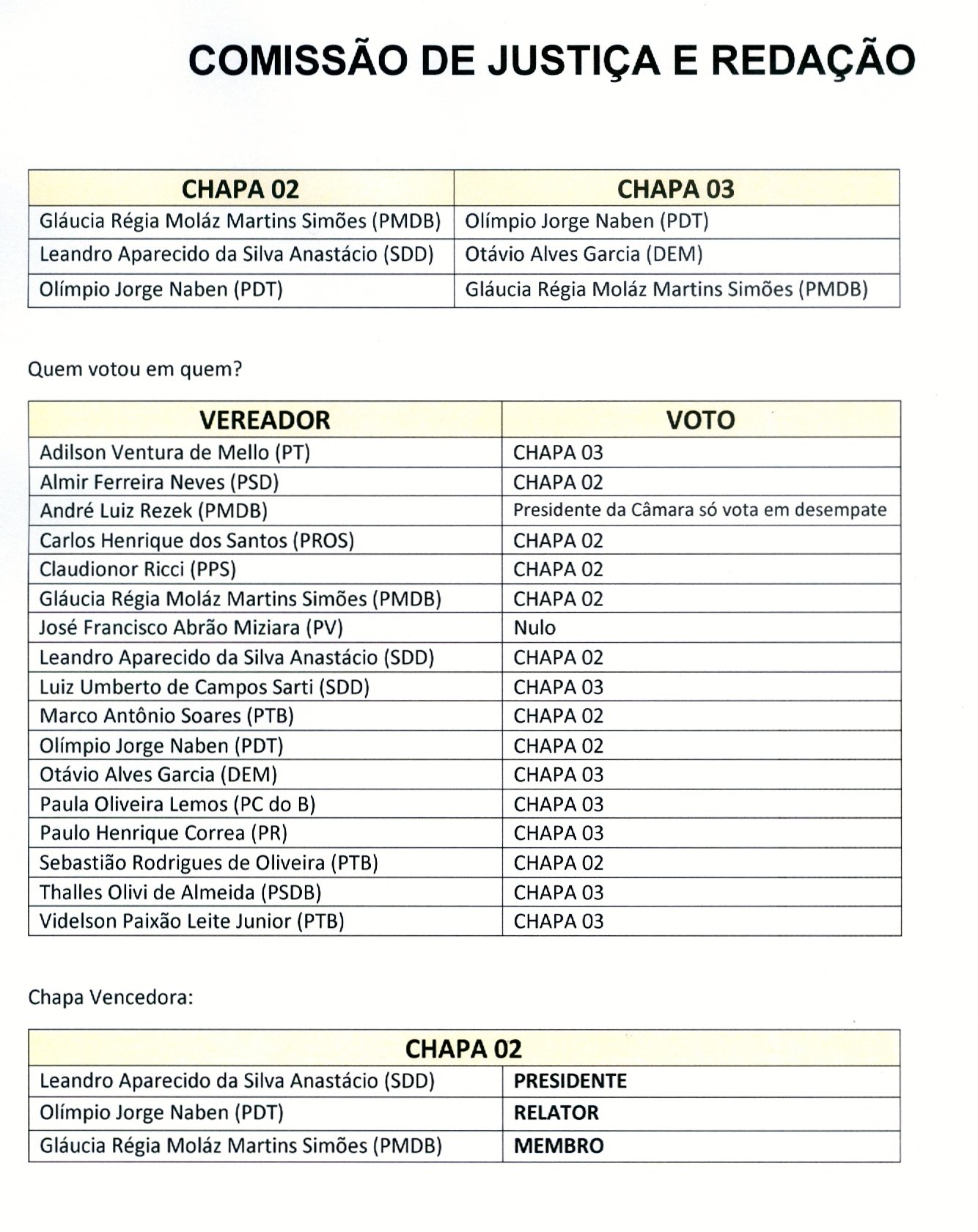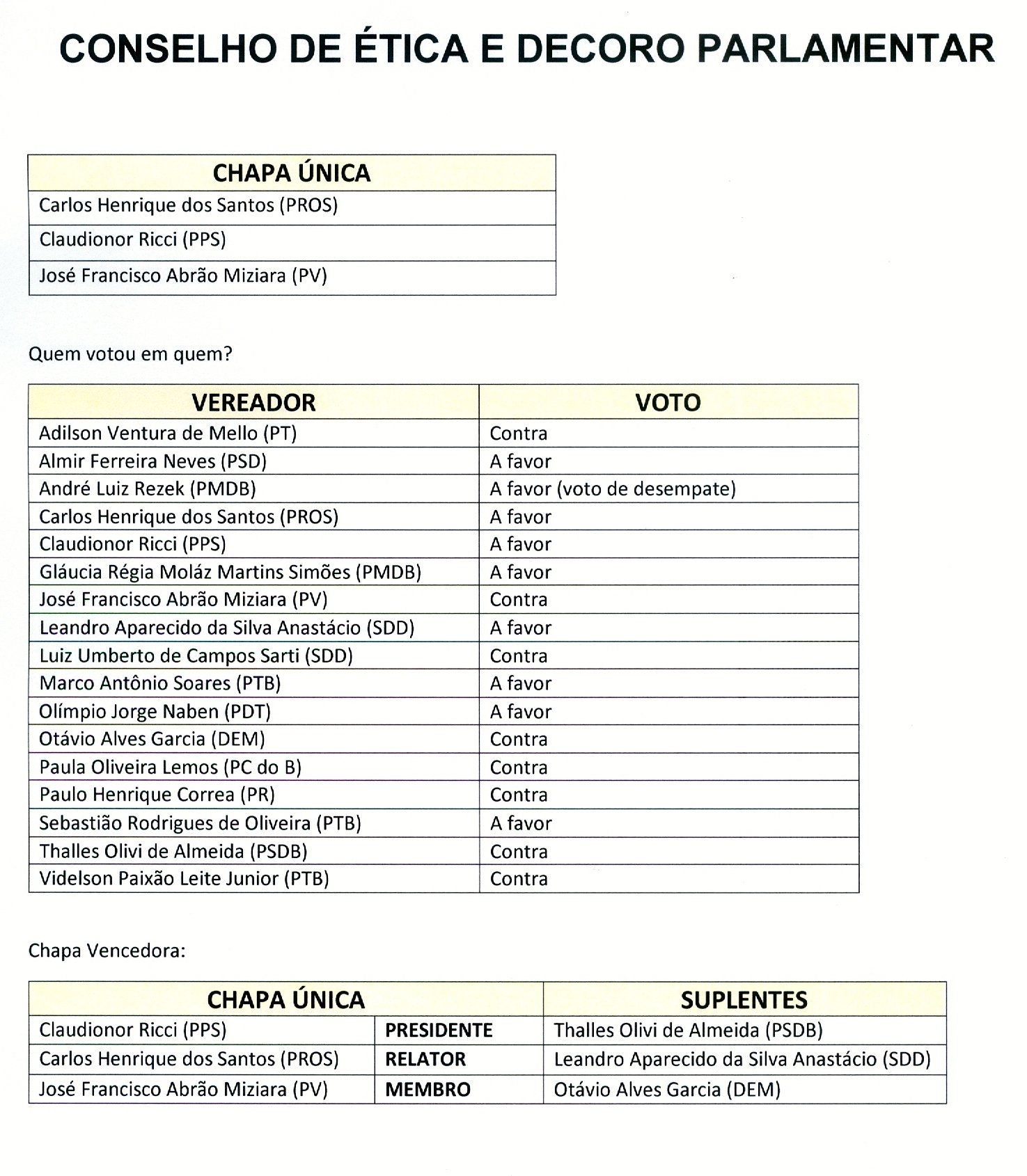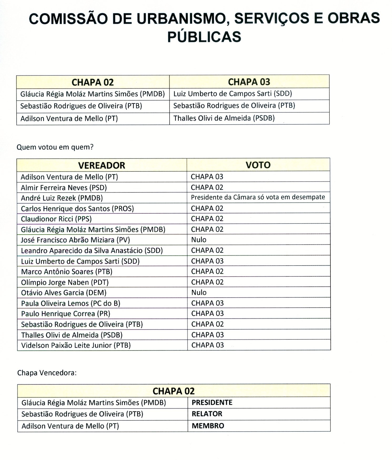 Aconteceu durante a Sessão Ordinária desta segunda-feira, 2 de fevereiro, a eleição para escolha dos novos integrantes das 06(seis) Comissões Permanentes e do Conselho de Ética e Decoro Parlamentar da Câmara para os próximos dois anos (biênio 2015/2016).
