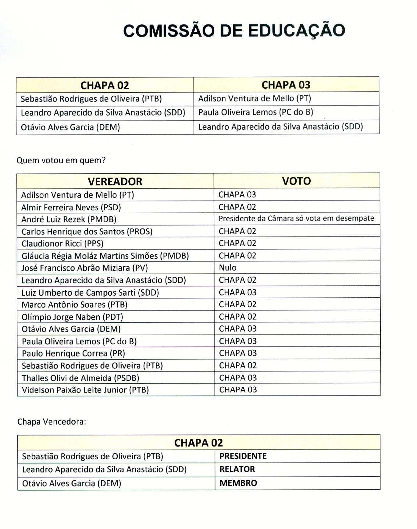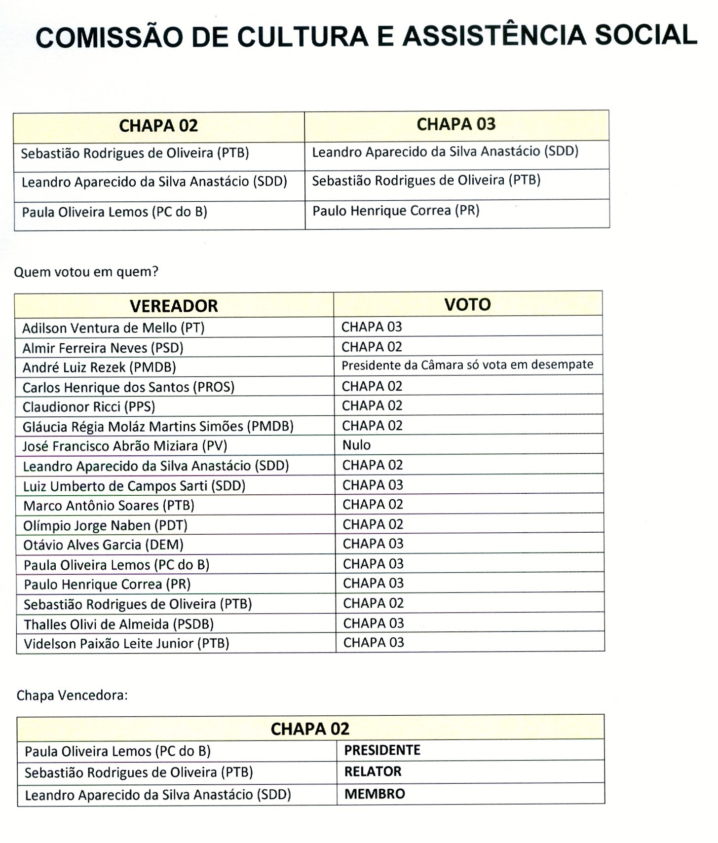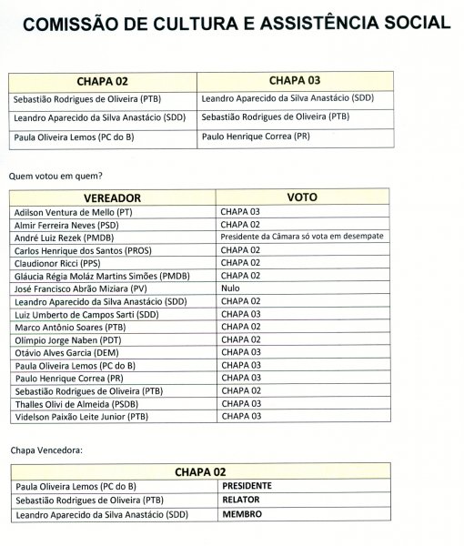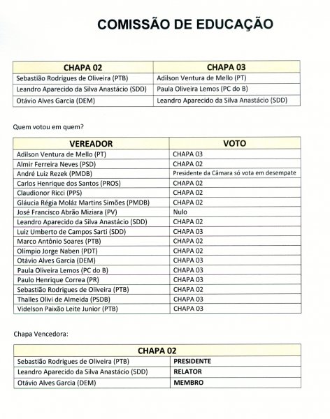 Aconteceu durante a Sessão Ordinária desta segunda-feira, 2 de fevereiro, a eleição para escolha dos novos integrantes das 06(seis) Comissões Permanentes e do Conselho de Ética e Decoro Parlamentar da Câmara para os próximos dois anos (biênio 2015/2016).